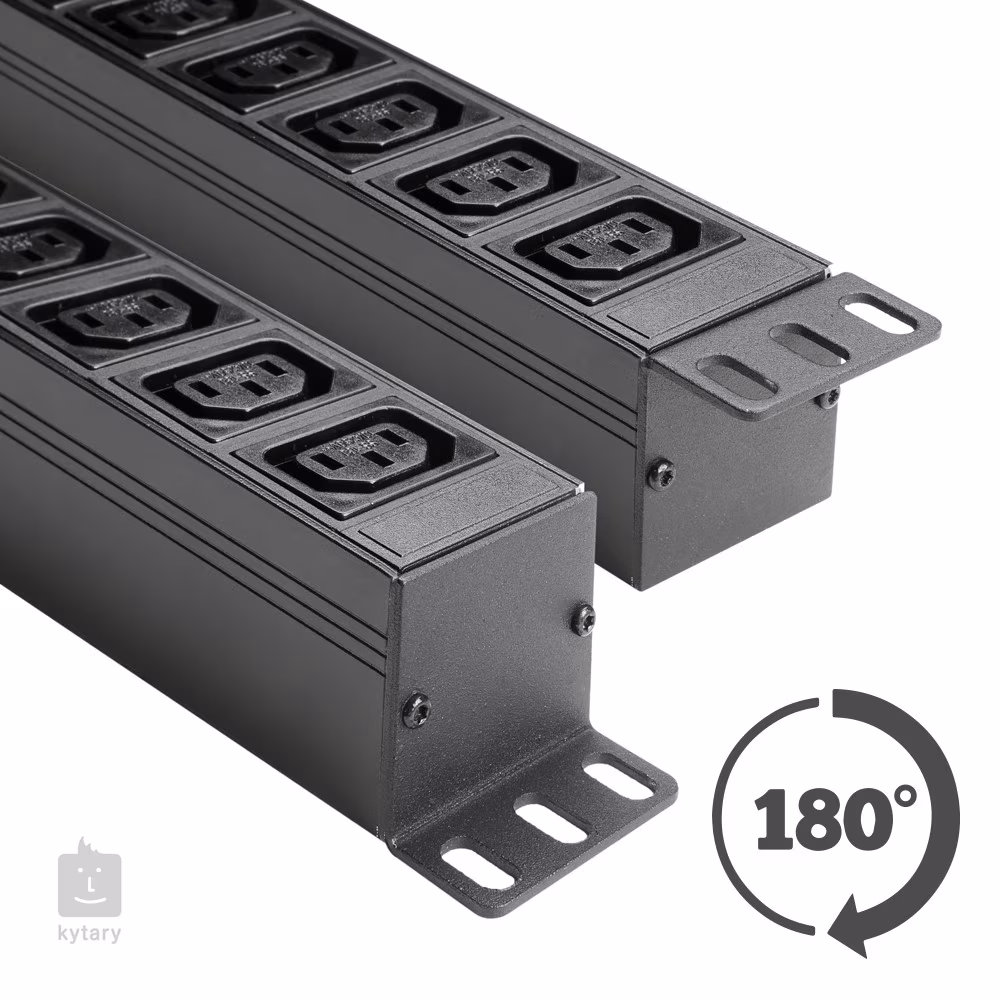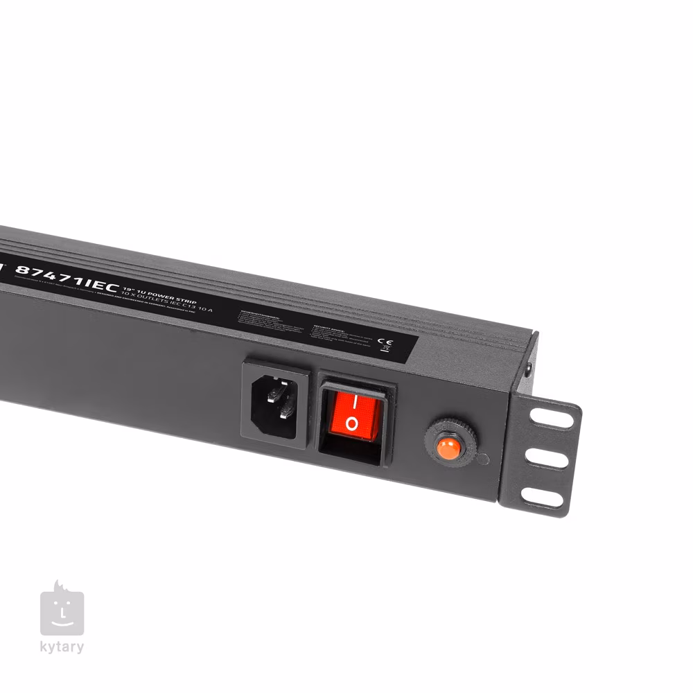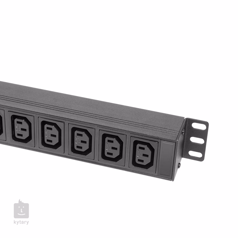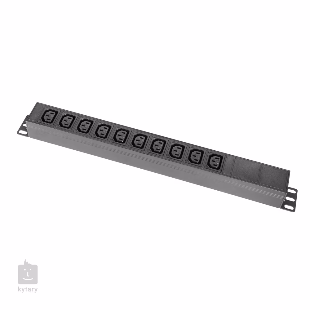 Moduł zasilający z przełącznikiem do systemu rack 19". Zasilacz zawiera 10 gniazd (IEC C13) o maksymalnym natężeniu prądu do 10 A, a jego wytrzymała konstrukcja została wykonana z wysokiej jakości aluminium. W zestawie znajduje się 10 kabli zasilających o długości 1,5 m.