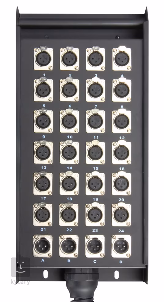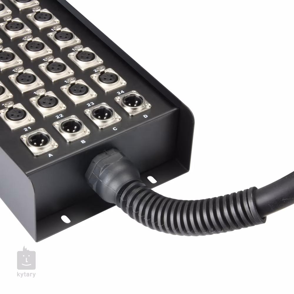 Stagebox jest niezbędnym elementem wyposażenia do nagłośnienia każdego wydarzenia. Na górnym panelu znajduje się terminal wtykowy z 24 kanałami wejściowymi (XLR F) i 4 kanałami wyjściowymi (XLR M). Solidna stalowa obudowa jest wyposażona w poręczny uchwyt do przenoszenia.