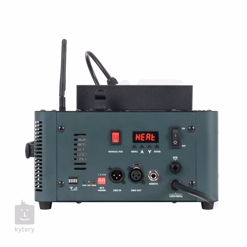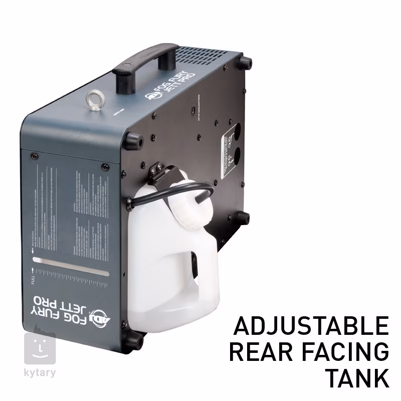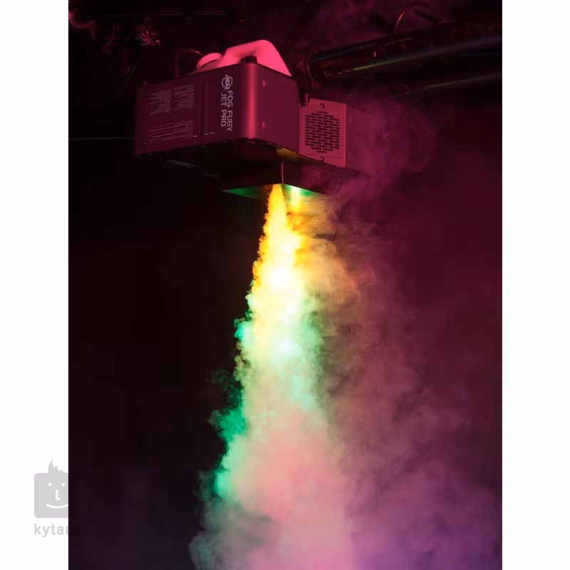 Fog Fury Jett firmy ADJ to profesjonalny generator mgły z podświetleniem LED, który dodaje do mgły kolory z dwudziestu ośmiu diod LED typu RGBA + UV o mocy 3 W (6x czerwone, 7x zielone, 6x niebieskie, 3x bursztynowe i 6x UV). Zapewnia również elastyczne możliwości sterowania za pomocą bezprzewodowego kontrolera DMX WiFLY. Urządzenie można ustawić w różnych kierunkach, wykorzystując w ten sposób zarówno poziome, jak i pionowe wytwarzanie mgły. Zbiornik można zamontować z przodu lub z tyłu urządzenia, tak aby generator mógł być skierowany do góry lub do dołu. Wstępne nagrzanie generatora do temperatury roboczej trwa około 9 minut, a następnie potrzebuje zaledwie 80 sekund na ponowne nagrzanie – dzięki temu można polegać na płynnej pracy bez czekania przez cały czas trwania imprezy. Element grzejny ma moc 1450 W i jest wyposażony w rewolucyjną technologię, która pozwala mu wytwarzać suche, równomierne chmury mgły o wysokości do 12 m. Pojemność zbiornika na płyn wynosi 2,5 l, a wydajność wytwarzania mgły osiąga bardzo wysoką wartość 1133 m³ na minutę. Generator ma specjalną konstrukcję elementu grzejnego, który wykorzystuje olej do transportu przez rury, zapobiegając w ten sposób zatykaniu się i zapychaniu. Ponadto jest wyposażony w technologię ETS (elektroniczne wykrywanie temperatury), która zapewnia ultra krótkie opóźnienie między poszczególnymi wydechami mgły. Fog Fury Jett Pro jest dostarczany z bezprzewodowym pilotem zdalnego sterowania. FFJPWR WR. Można go jednak również obsługiwać ręcznie za pomocą przejrzystego panelu sterowania z wyświetlaczem LCD i czterema przyciskami lub za pomocą wspomnianego już bezprzewodowego DMX (dostępnych jest 1, 2, 3, 7 lub 9 kanałów DMX).