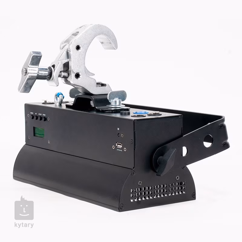 Tylny panel jest wyposażony w 3-pinowe i 5-pinowe złącza DMX oraz złącza zasilania PowerCon. Z boku znajduje się panel sterowania i złącze USB do aktualizacji oprogramowania układowego. Reflektor można zamontować do konstrukcji wsporczej za pomocą metalowego wspornika lub za pomocą dołączonego zacisku - w przypadku korzystania z zacisku można zdjąć boczny wspornik i przymocować kolejną jednostkę z boku stroboskopu, aby płynnie rozszerzyć obszar światła i umożliwić podkreślenie dynamicznych efektów. W zestawie znajduje się również przewód zasilający i kontroler na podczerwień.