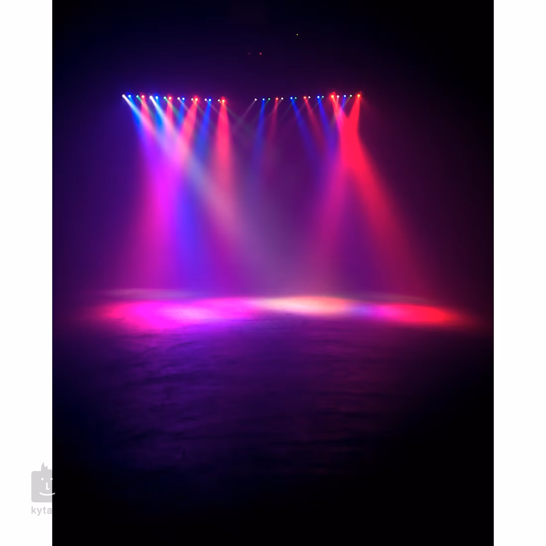 The ADJ Mega Beam Bar a Linear Fixture that produces 16 sharp, 13.5 degree beams of light and adds excitement to any party with color chasing light patterns. It’s powered by four red, four green, four blue and four white 3-Watt LEDs.