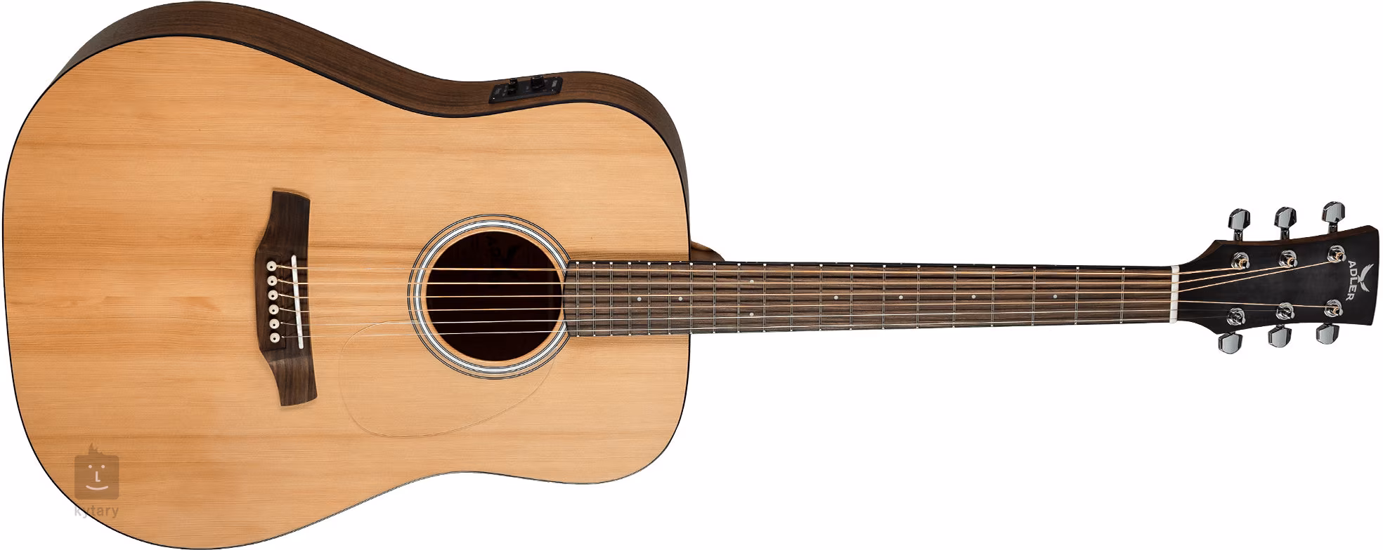 Możliwość nagłośnienia zapewnia elektronika Fishman Presys II z regulatorem głośności, dwupasmowym korektorem, inwerterem fazy i wbudowanym stroikiem. Struny są zamocowane przez zerowy i siodełkowy próg z kości w chromowanych mechanizmach die-cast i mostku z pau ferro. Skromne, ale stylowe wykończenie podkreśla przezroczysta płytka ochronna, czarna obwódka korpusu i rozeta złożona z czarno-białych linii.