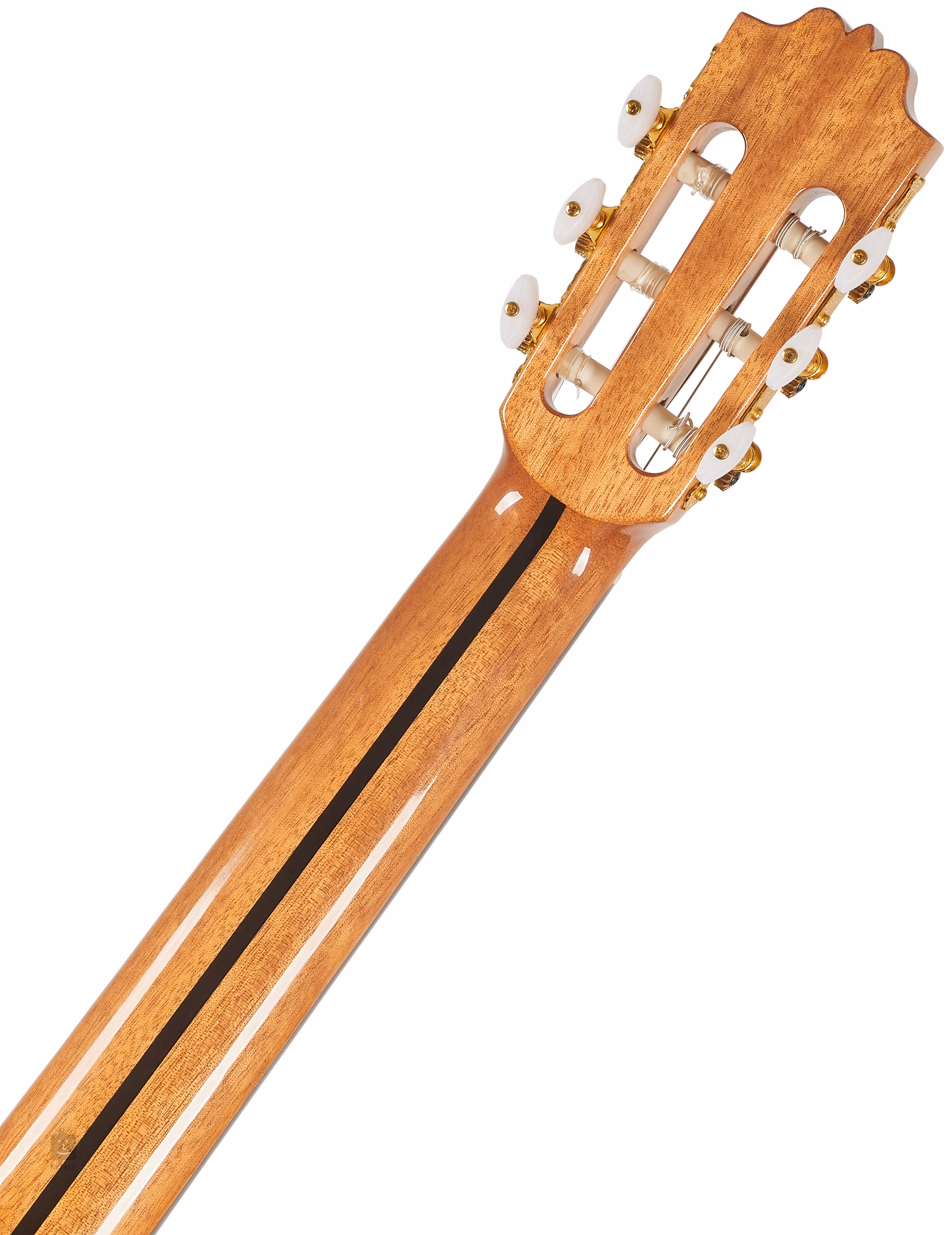 Gitara klasyczna Admira ADM08 to półmasywny, ręcznie wykonany instrument, który przypadnie do gustu nawet najbardziej doświadczonym muzykom. Przód gitary wykonany jest z litego cedru, a tył i boki z laminowanego palisandru. Szyjka z afrykańskiego mahoniu posiada palisandrowe usztywnienie, a podstrunnica jest palisandrowa. Dobre strojenie gwarantuje mocowanie strun w wysokiej jakości klasycznej mechanice ze złotym wykończeniem i palisandrową podstrunnicą. Stylowe wykonanie podkreślają tradycyjne elementy w postaci rozety, klonowego binding i logo firmy na główce.