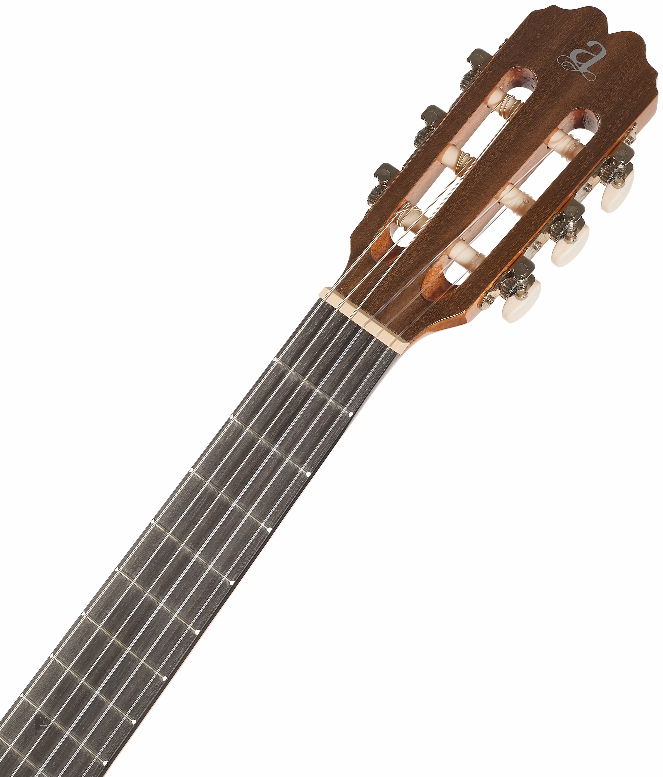 Admira ADMI0100 to dziecięca gitara klasyczna w rozmiarze 3/4. Jest to przystępny cenowo instrument z serii Admira Alba odpowiedni dla młodych aspirujących gitarzystów. Przód gitary wykonany jest z laminowanego świerku, tył i boki z laminowanego sapele. Mahoniowa szyjka jest przyklejona do podstrunnicy wykonanej z drewna kabukalli. Struny są zamontowane w klasycznych mechanizmach strojenia. Stylowe wykonanie podkreślają tradycyjne elementy w postaci rozet i lamówek.