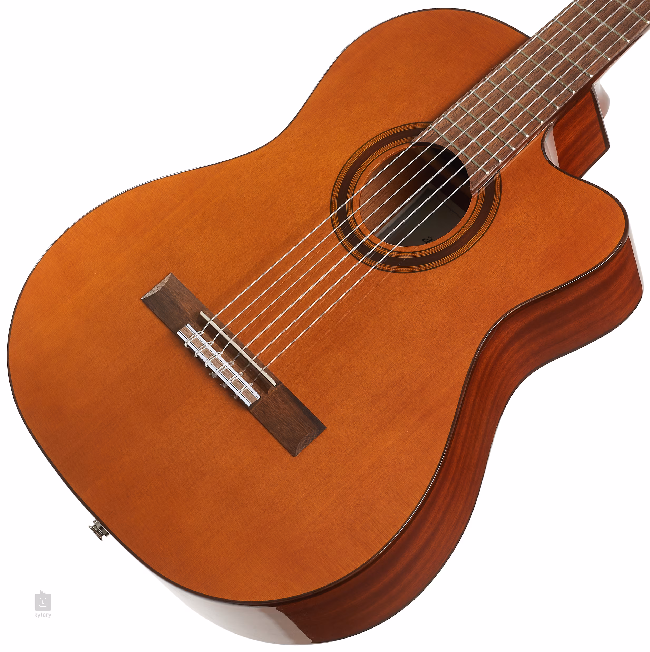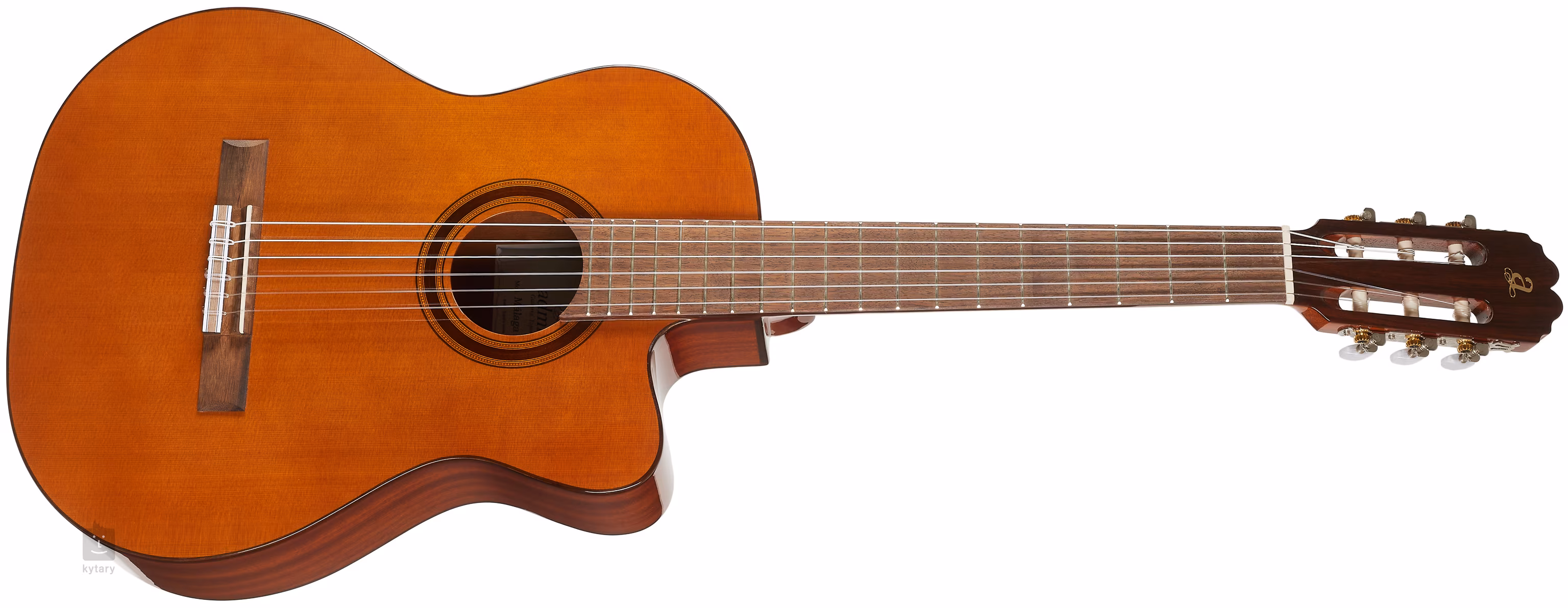 Admira Málaga (ADM0540EC) to przystępna cenowo klasyczna gitara elektroakustyczna, która zachwyci zarówno początkujących, jak i bardziej doświadczonych graczy. Posiada półstałą konstrukcję z litym cedrowym przodem oraz laminowanym tyłem i bokami z drewna sapele. Korpus pokryty jest błyszczącym lakierem. Do szyjki z afrykańskiego mahoniu przyklejona jest podstrunnica z drewna kabukalli. Dolne wycięcie w korpusie ułatwia dostęp do wyższych pozycji podstrunnicy. Struny są zamontowane w klasycznych niklowych maszynkach do strojenia i podstrunnicy kabukalli. Stylowe wykonanie podkreślają tradycyjne elementy w postaci rozet, lamówek i logo firmy na główce.