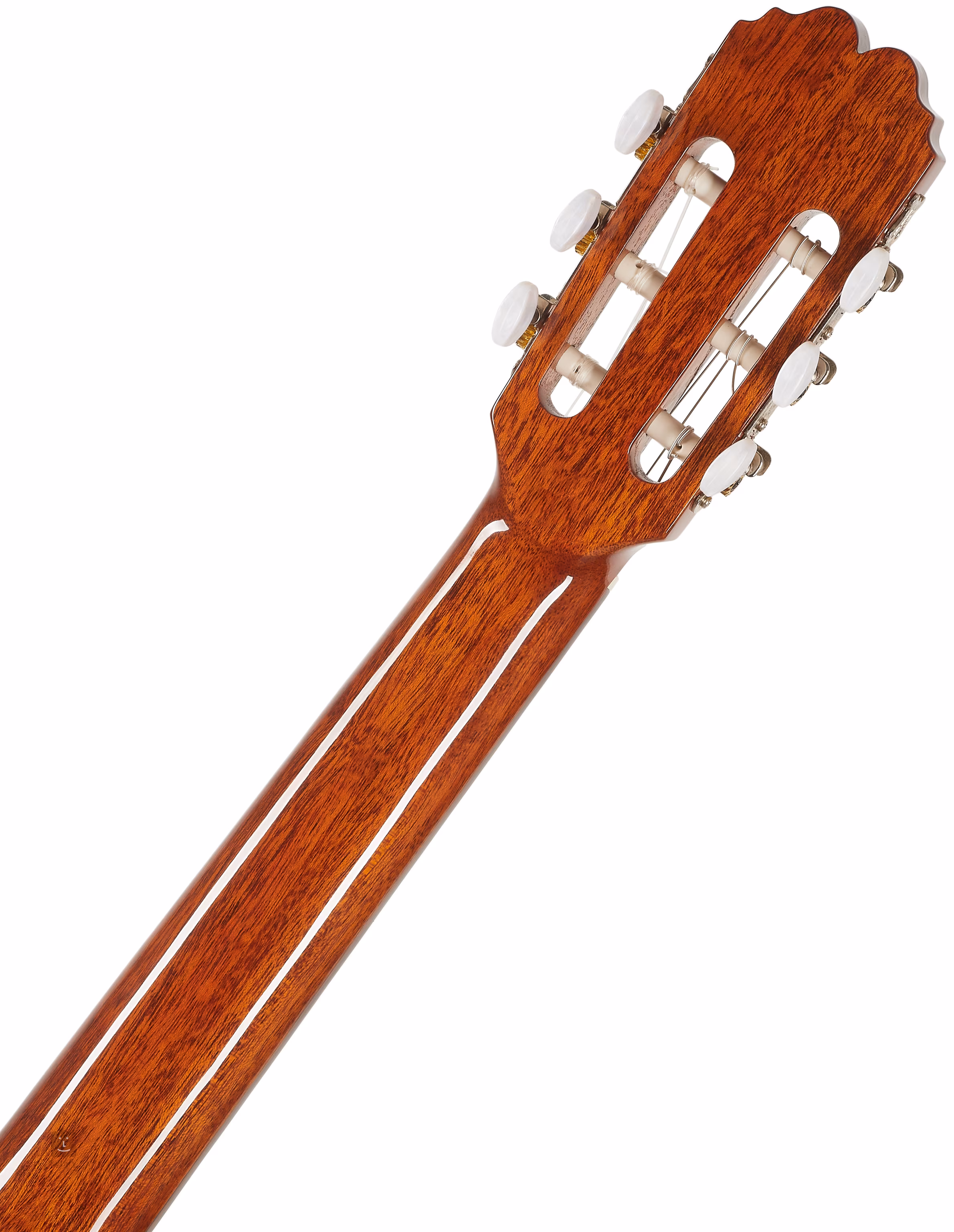 Admira Málaga (ADM0540EF) to przystępna cenowo klasyczna gitara elektroakustyczna, która zachwyci zarówno początkujących, jak i bardziej doświadczonych graczy. Posiada półstałą konstrukcję z litym cedrowym przodem oraz laminowanym tyłem i bokami z drewna sapele. Korpus pokryty jest błyszczącym lakierem. Do szyjki z afrykańskiego mahoniu przyklejona jest podstrunnica z drewna kabukalli. Struny są zamontowane w klasycznych niklowych maszynkach do strojenia i podstrunnicy kabukalli. Stylowe wykonanie podkreślają tradycyjne elementy w postaci rozet, lamówek i logo firmy na główce.