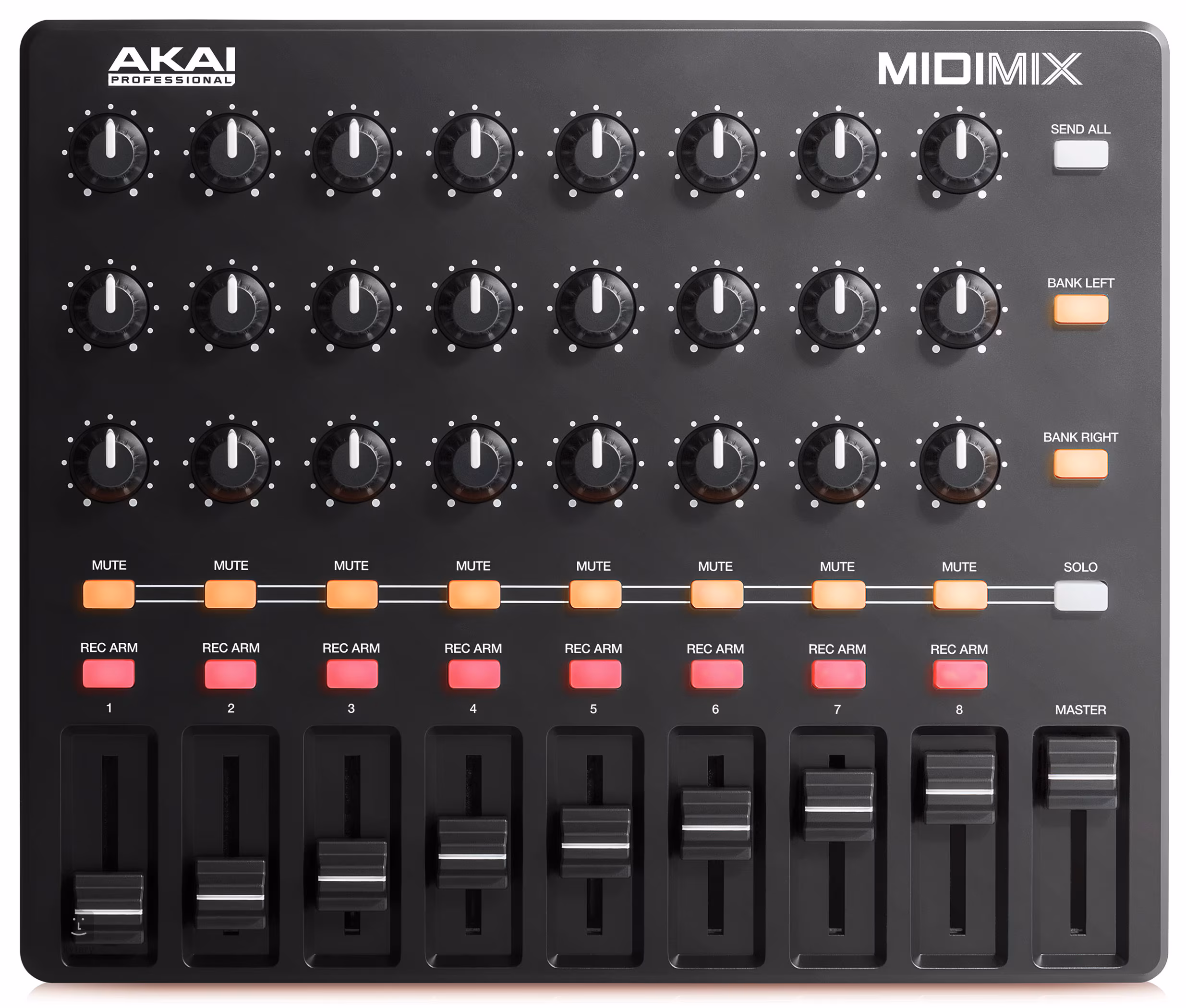 Jak zwykle marka AKAI gwarantuje pewną jakość połączoną z intuicyjnym rozmieszczeniem wszystkich kontrolek. Z pewnością nie będziesz miał problemu z przejściem z innego kontrolera do MIDImixa! Kombinacja 8 faderów liniowych, fadera głównego, 24 pokręteł (po trzy na kanał). Użytkownik może wysłać wszystkie ustawienia kontrolera do swojego DAW za pomocą jednego przycisku, co oznacza, że wszystkie modyfikacje i edycja mogą odbywać się w czasie rzeczywistym, oferując wiele kreatywnych możliwości.
