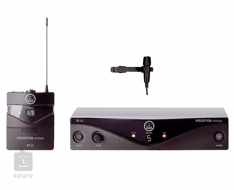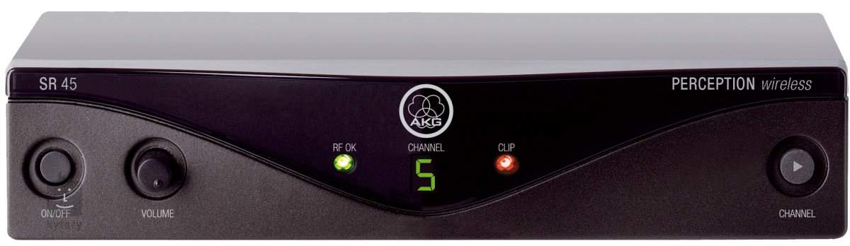 Zestaw AKG Perception Wireless Presenter Set zawiera odbiornik AKG SR45, nadajnik AKG PT45 bodypack i mikrofon klapowy AKG CK99. Odbiornik ma minimalną liczbę elementów sterujących na obudowie, ale ustawienie parametrów nie jest w żaden sposób ograniczone. Elementy sterujące obejmują potencjometr głośności, przycisk Channel do przełączania kanałów, wyświetlacz LED pokazujący wybrany kanał, wskaźniki LED sygnału i przesterowania, wyłącznik zasilania i trymer do regulacji squelch. Wyjścia są wyposażone w złącza XLR i 1" Jack. Bodypack PT45 jest najmniejszym i najlżejszym nadajnikiem w swojej klasie, a dodatkowo jest kompatybilny z miniaturowymi mikrofonami AKG MicroMics, które pozwalają na wysokiej jakości nagłaśnianie wszystkich popularnych instrumentów. PT45 posiada wyświetlacz, wskaźnik baterii LED i przełącznik zasilania, a pod pokrywą baterii znajduje się przełącznik kanałów i trymer do regulacji poziomu wejściowego. Bodypack jest zasilany pojedynczą baterią AA, która zapewnia do 10 godzin pracy. Dołączony do zestawu klapowy mikrofon lavalier zapewnia naturalną reprodukcję głosu z zaakcentowanym pasmem powyżej 10 kHz, które zwiększa wyrazistość wypowiadanych słów. Kardioidalna charakterystyka kierunkowa i zmniejszona czułość przy niskich częstotliwościach zapewniają bardzo dobrą odporność na wszelkiego rodzaju zakłócenia.