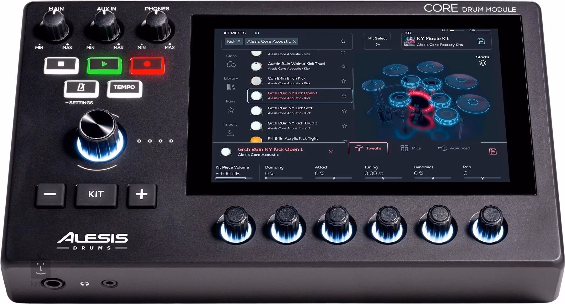 Interfejs sterowania oferuje enkodery obrotowe, oddzielne regulatory głośności i strumieniowanie Bluetooth 5.0. Moduł obsługuje łączność MIDI, import próbek przez USB i jest kompatybilny z nowoczesnymi wyzwalaczami Alesis E-kit. Dzięki dużej mocy obliczeniowej zapewnia natychmiastową reakcję i realistyczny transfer dynamiki gry.
