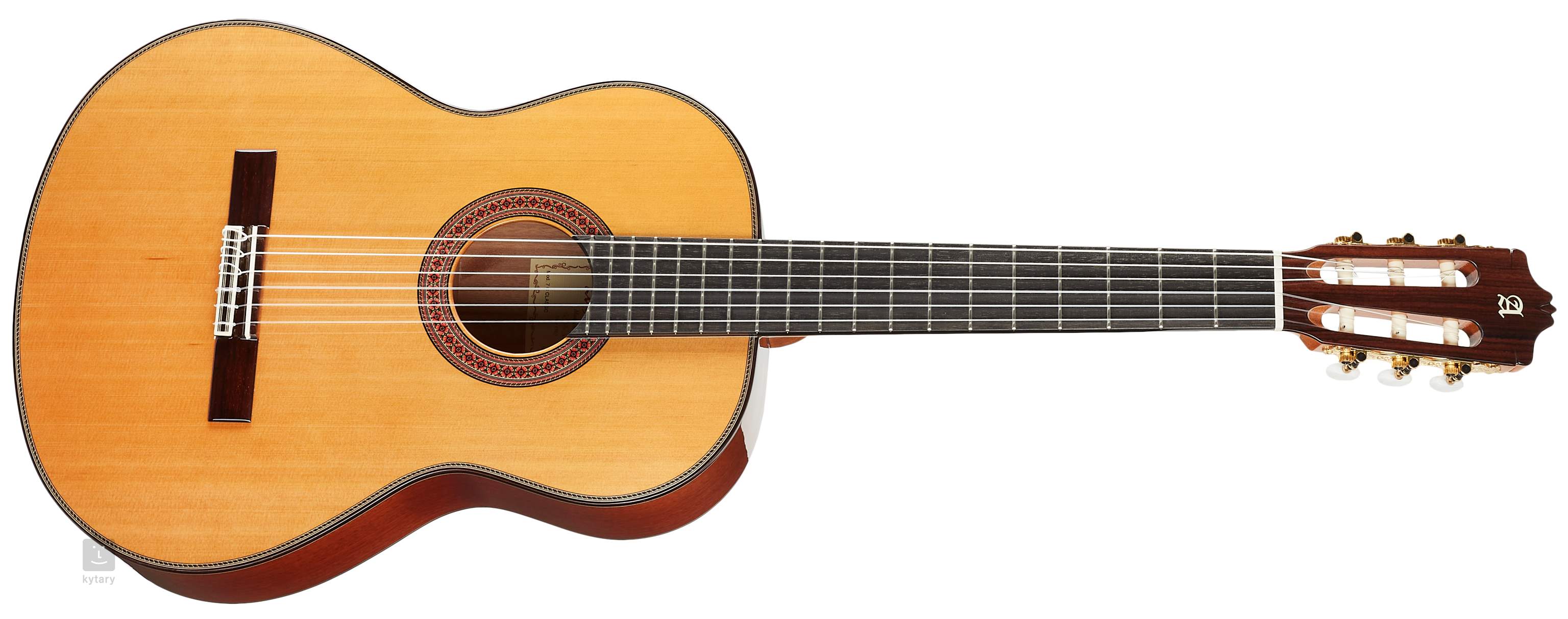 The 7 C Classic model is a conservatory level guitar, completely handmade with solid woods; Cedar on top and African varieties for the neck and for the back and sides. Specifically for the 7 C Classic model, Alhambra has been used Mahogany, also called African Mahogany, for the neck which has been reinforced with an ebony strip. The reinforcement, which is hidden in the neck, can be seen only by using a mirror or removing the nut.