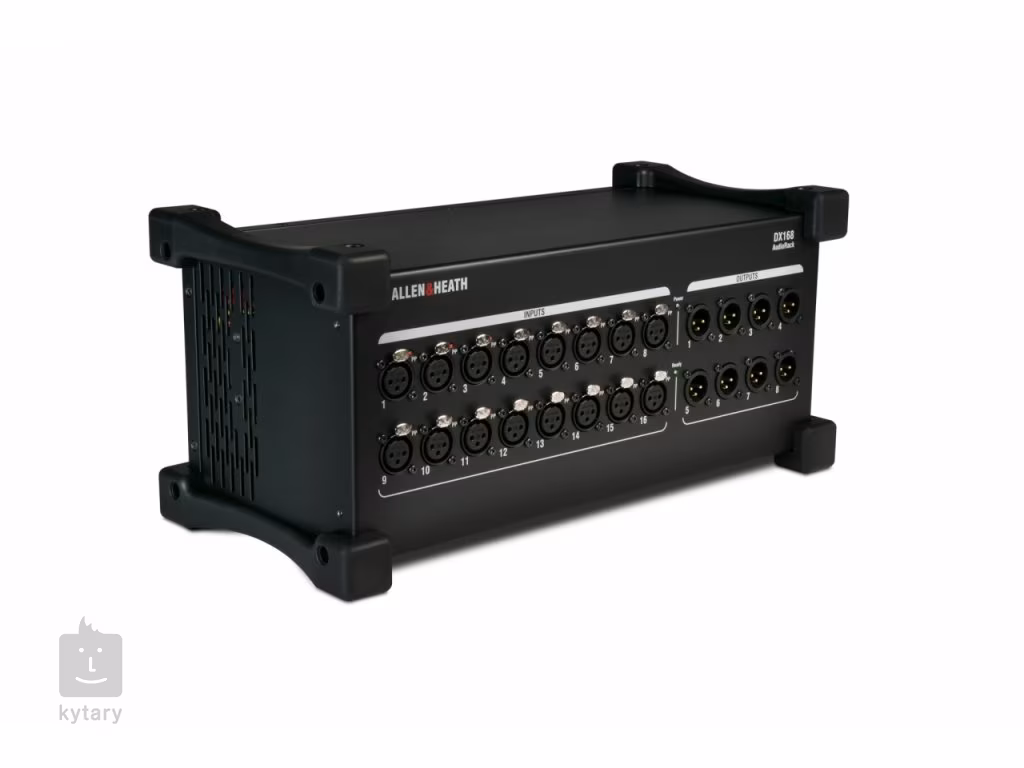 ALLEN&HEATH dLive DX168 to przenośny stagebox, który rozszerza liczbę wejść i wyjść w systemie dLive (kompatybilność z MixRackami oraz pulpitami S Class i C Class), Avantis, SQ i AHM-64. Oferuje 16 przedwzmacniaczy mikrofonowych ze wskaźnikiem LED zasilania fantomowego i 8 wyjść liniowych. Do pojedynczego systemu dLive można podłączyć do 6 ekspanderów DX168, 4 przez MixRack i 2 przez konsolę sterującą, zwiększając liczbę złączy o zdalnie sterowane 96 wejść i 48 wyjść. Połączenie z mikserem, MixRackiem i innym ekspanderem DX odbywa się za pomocą pojedynczego kabla Cat5e, redundantne połączenie z kompatybilnym sprzętem i łańcuchowe połączenie z innym ekspanderem DX168 odbywa się za pomocą dodatkowego portu Ethernet.