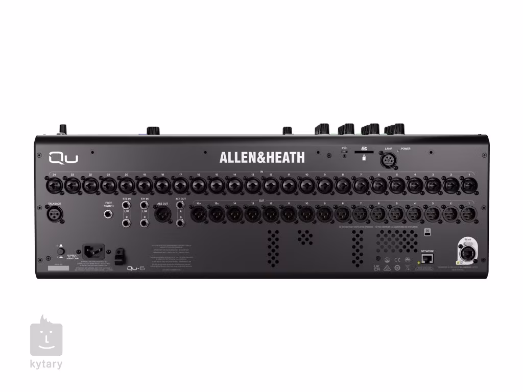 Mikser Allen&Heath QU-6 wyposażony jest w 24 wejścia combo XLR/Jack, 2 stereofoniczne wejścia liniowe (2x 2 Jack TRS 6,3 mm), 16 wyjść XLR i 2 wyjścia liniowe Jack TRS. Jego panel sterowania zawiera łącznie dwadzieścia pięć czułych drążków 100 mm do łatwej regulacji poszczególnych kanałów. Jego sercem jest potężny rdzeń XCVI FPGA o częstotliwości próbkowania 96 kHz, który zapewnia niezrównaną jakość dźwięku. Dostępne są również opcje DEEP Processing, umożliwiające rozszerzenie podstawowych funkcji miksowania o wysokiej jakości wtyczki, które często naśladują rzeczywiste modele kompresorów, przedwzmacniaczy i innego sprzętu w celu uzyskania profesjonalnego dźwięku.