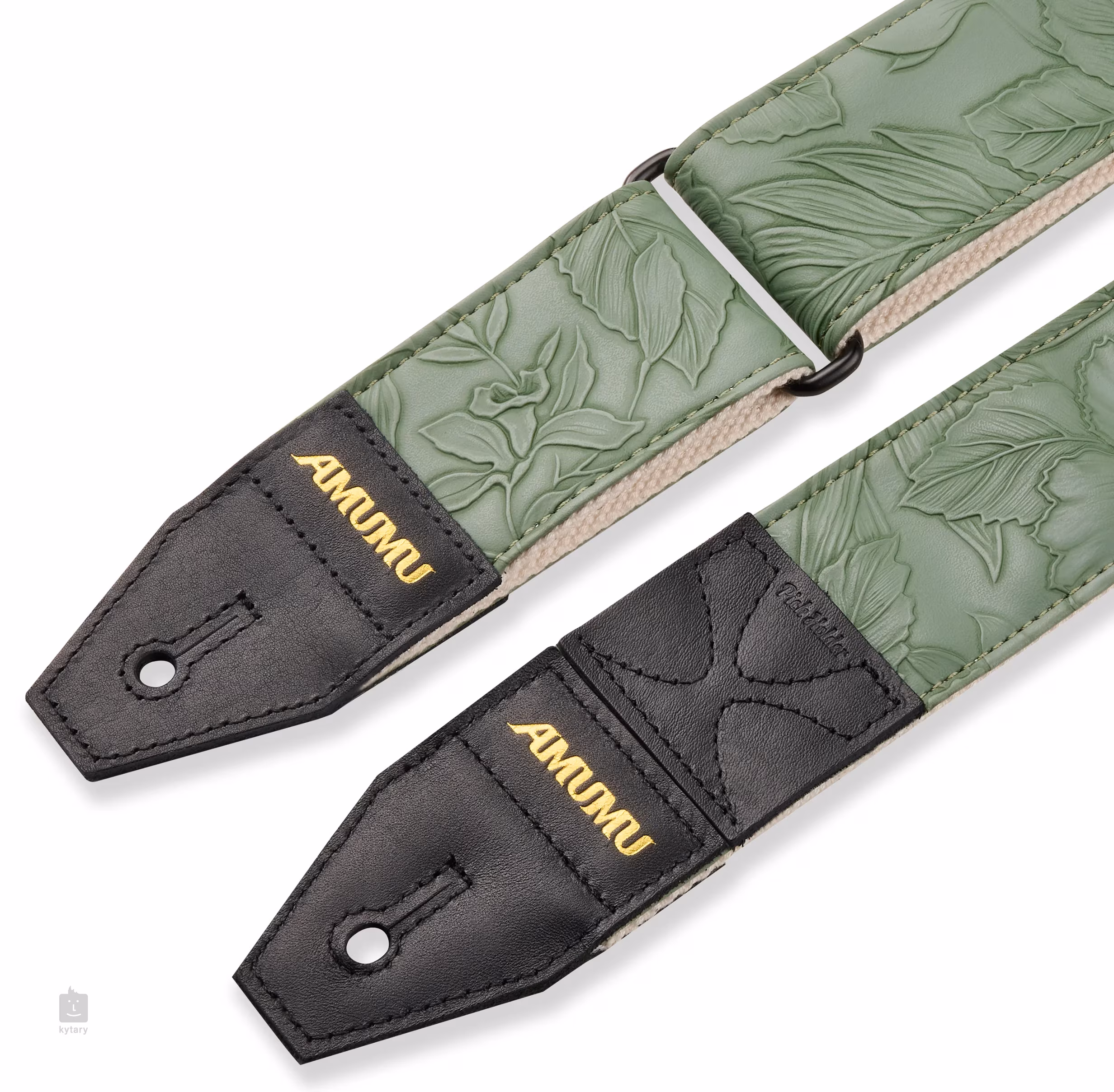 Paski do gitary marki AMUMU są znane ze swojej wytrzymałości, niezawodności i jakości wykonania. Dzięki szerokiej gamie modeli i kolorów każdy znajdzie coś dla siebie. Pasek Embossed Leaf Green jest wykonany z zielonkawego materiału skóropodobnego, ozdobionego liśćmi. Skóra sztuczna jest podszyta elastycznym materiałem bawełnianym, który zapewnia elastyczność i całodzienny komfort. Wysokiej jakości końcówki z prawdziwej skóry zapewniają niezawodne mocowanie paska do instrumentu i jego długą żywotność. Dla większej praktyczności jedna z końcówek jest dodatkowo wyposażona w trzy uchwyty na kostki, które przydadzą się, gdy w trakcie koncertu lub ćwiczeń przypadkowo upuścisz kostkę.