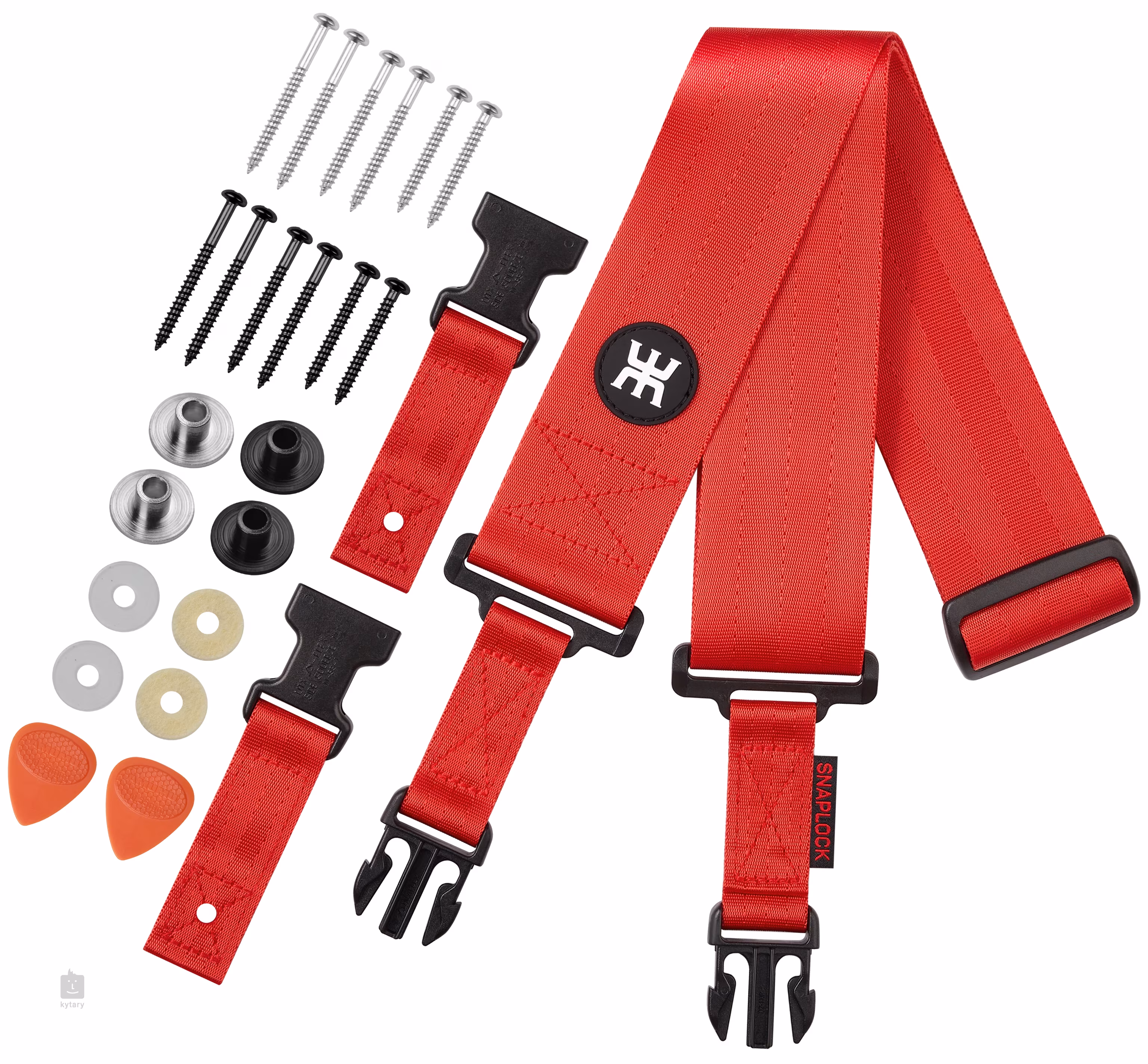 Dzięki praktycznemu mechanizmowi odpinanemu pasek można w każdej chwili zdjąć nawet po przykręceniu, a dla większej elastyczności jego końcówki są również kompatybilne ze wszystkimi modelami pasków SNAPLOCK i Dimarzio®. Sam pasek jest wykonany z bardzo wytrzymałego nylonu 1000D i posiada bardzo wytrzymałą klamrę Duraflex®. Oczywiście można go regulować w zakresie od 99 do 146 cm. Dostępny jest w kilku wersjach kolorystycznych.