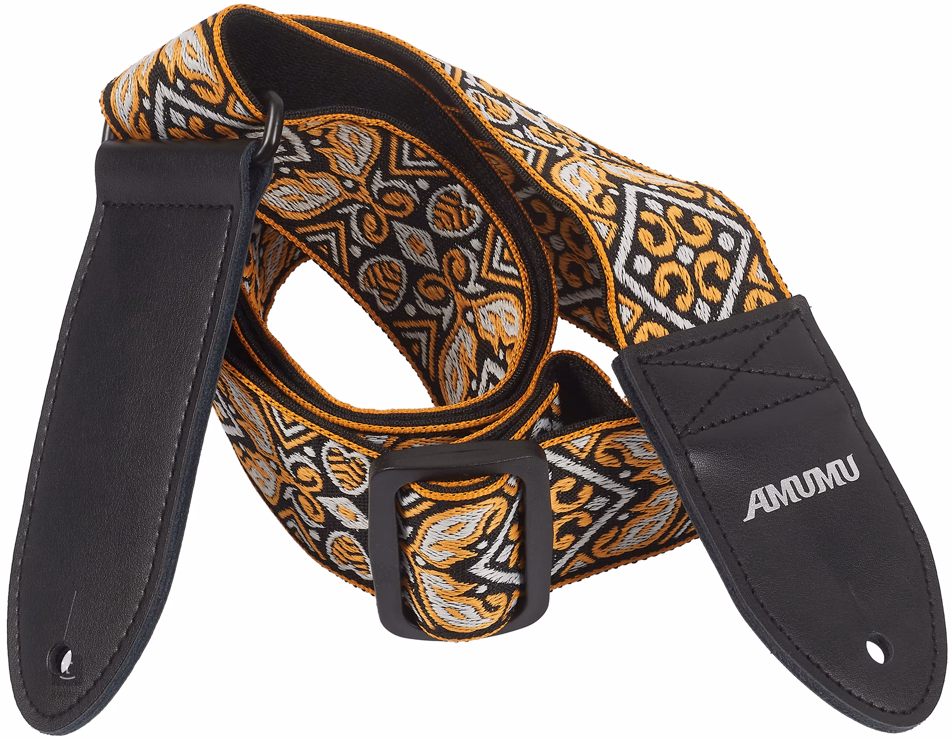 Bawełniany pasek Vintage Embroidery Orange jest wykonany z wysokiej jakości bawełny z tyłu i poliestru z przodu. Długość jest regulowana i pasuje do większości graczy. Umożliwia to również użycie tego paska, oprócz gitary i basu, na przykład na ukulele lub mandolinie. Końcówki są wykonane ze skóry, co zapewnia dobre dopasowanie do instrumentu. W zestawie znajduje się również smycz na wypadek, gdyby instrument był wyposażony tylko w jedną rolkę i gumowe zamki zapobiegające niepożądanemu rozwijaniu. Ozdobiony jest haftowanym reliefem.
