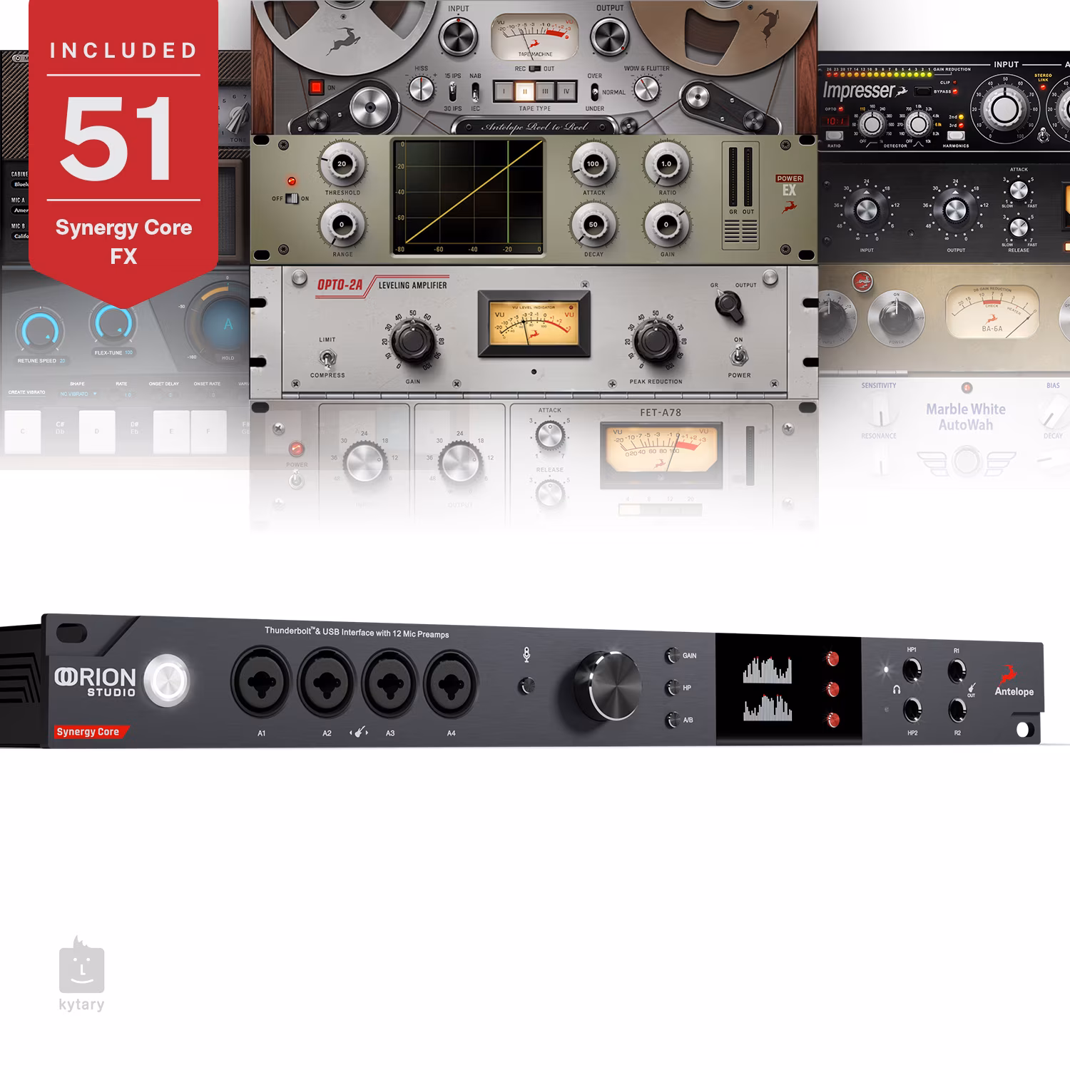 51 efektów Antelope w cenie Orion Studio Synergy Core odblokowuje ponad 50 najlepszych wtyczek do efektów w czasie rzeczywistym. Zaraz po wyjęciu z pudełka otrzymujesz emulacje przedwzmacniaczy mikrofonowych, kompresory, korektory, pogłosy oraz modele wzmacniaczy gitarowych i kolumn. A dzięki Synergy Core masz do dyspozycji procesory do uruchamiania efektów symultanicznych.