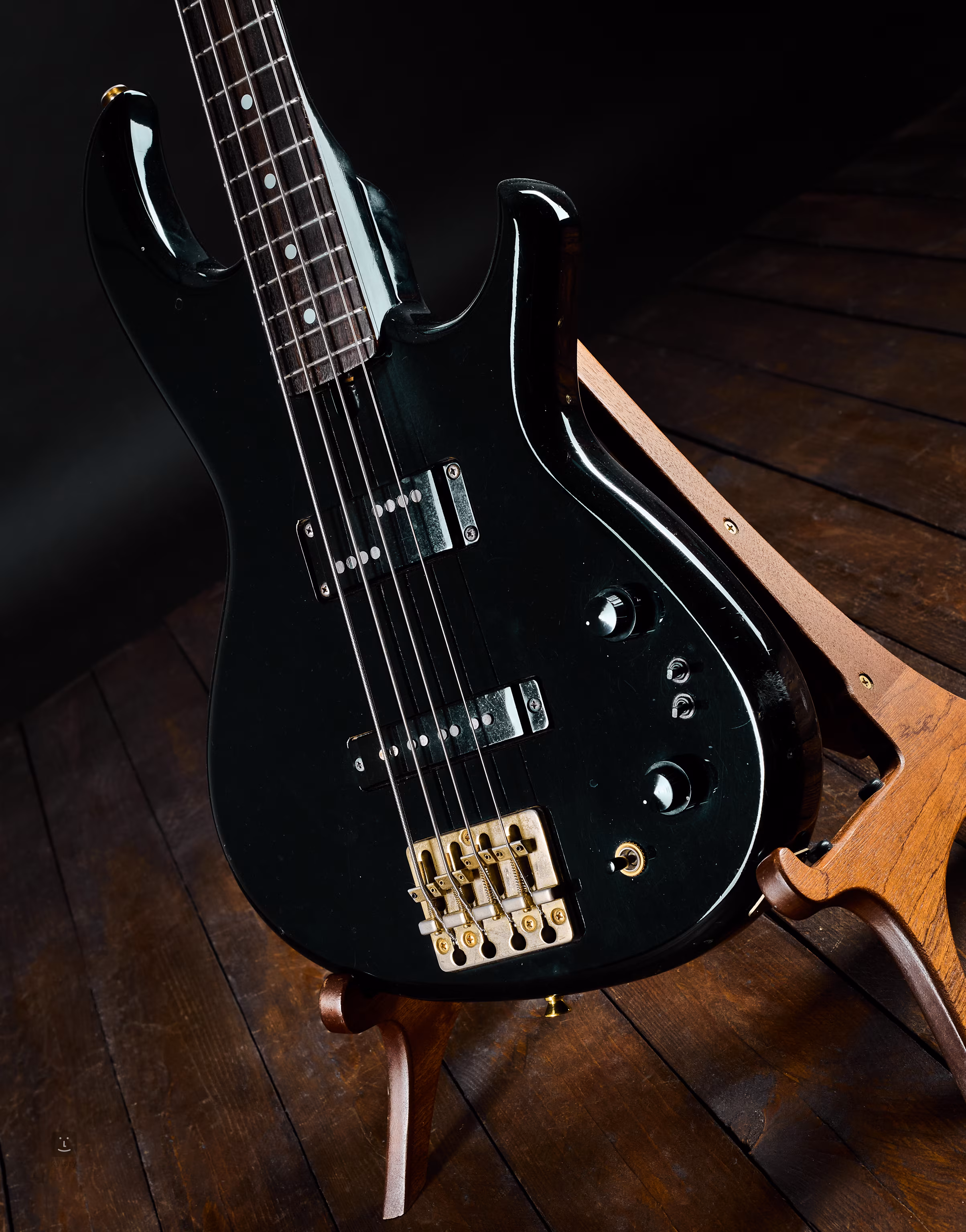 Korpus jest wykonany z olchy, a gryf z klonu z przykręcanym połączeniem. Podstrunnica z palisandru ma 22 progi. Sprzęt jest w kolorze złotym.