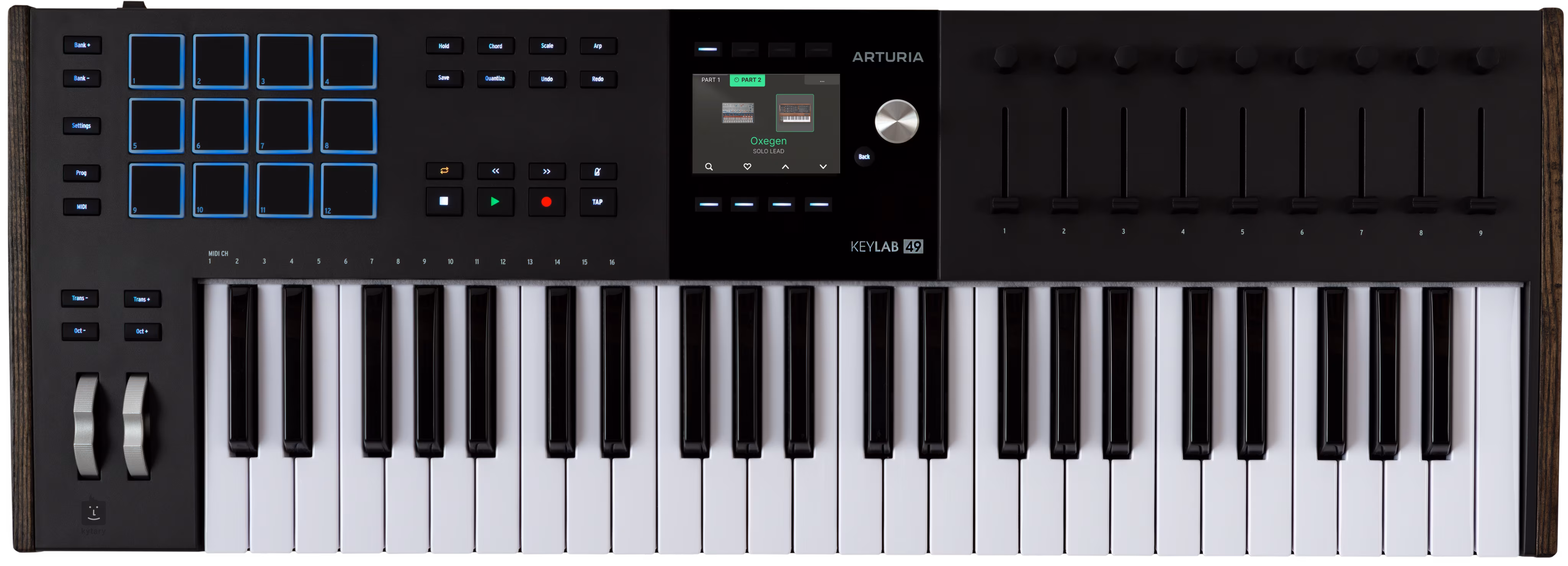 Jakie są więc główne zmiany w stosunku do poprzedniej generacji? - Ulepszona klawiatura - lepsza kontrola dźwięków syntezatora i fortepianu dzięki przeprojektowanemu balansowi klawiatury i napięciu sprężyny, a także aftertouch i możliwość sterowania zewnętrznymi pedałami sustain i ekspresji. - nowy interfejs wizualny zapewnia pełną kontrolę nad ustawieniami i parametrami, umożliwiając mapowanie za pomocą kolorowego ekranu 480x320 px sterowanego za pomocą 8 przycisków kontekstowych - przeprojektowane dotykowe enkodery i fadery - zmodernizowane funkcje kreatywne Skala, Arpeggiator i Akordy - 12 padów z łącznie 4 bankami - W pełni analogowe wejścia/wyjścia MIDI do sterowania zewnętrznymi urządzeniami sprzętowymi - Zaktualizowany pakiet oprogramowania