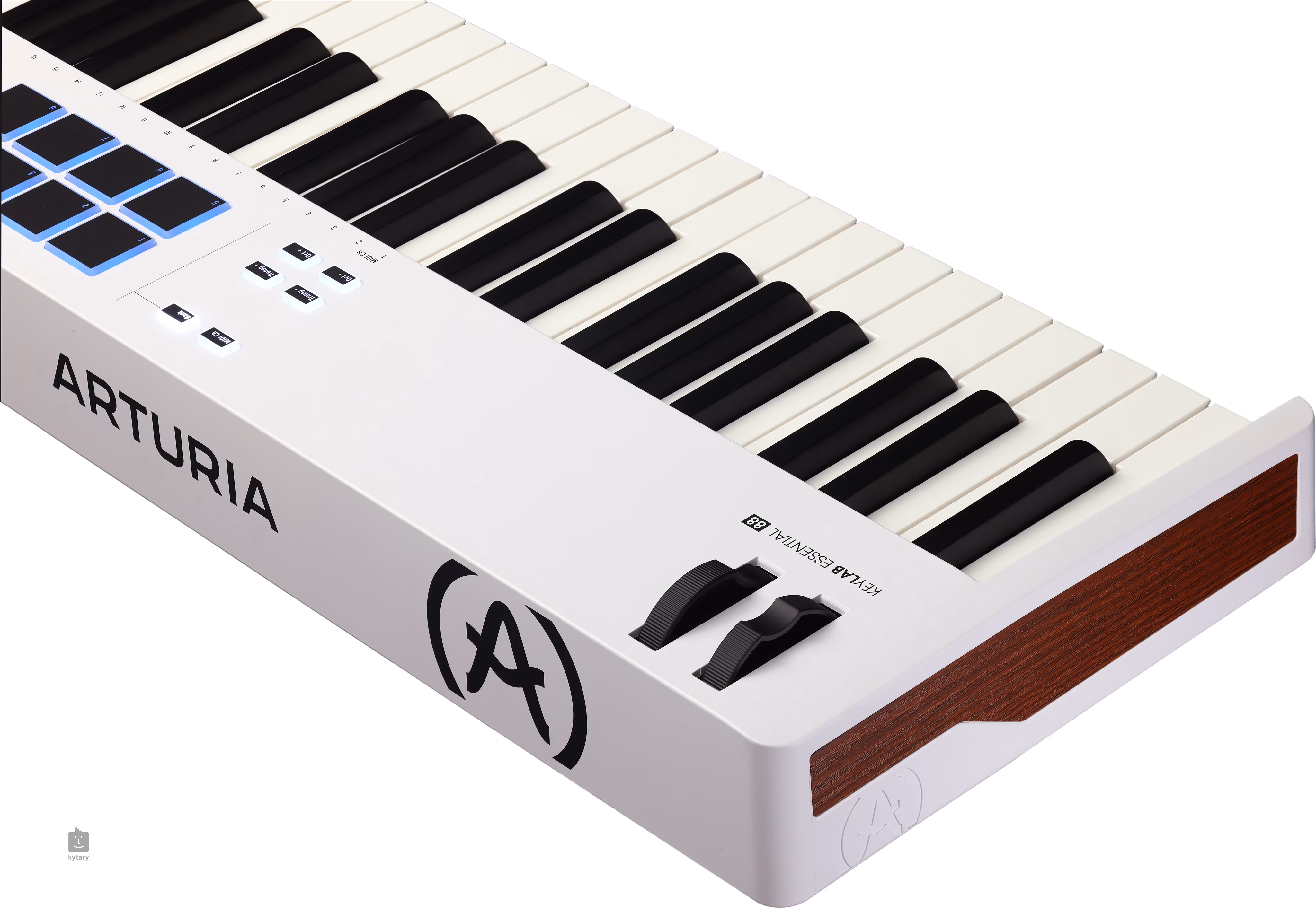 Arturia KeyLab Essential 88 MK3 to ulepszona wersja popularnego kontrolera MIDI z półważoną klawiaturą, 88 pełnowymiarowymi klawiszami, 8 podświetlanymi padami RGB, pełną integracją z oprogramowaniem Arturia Analog Lab, obsługą protokołów sterowania MCU i HUI oraz niestandardowymi skryptami dla jeszcze lepszej kontroli praktycznie każdego nowoczesnego DAW.