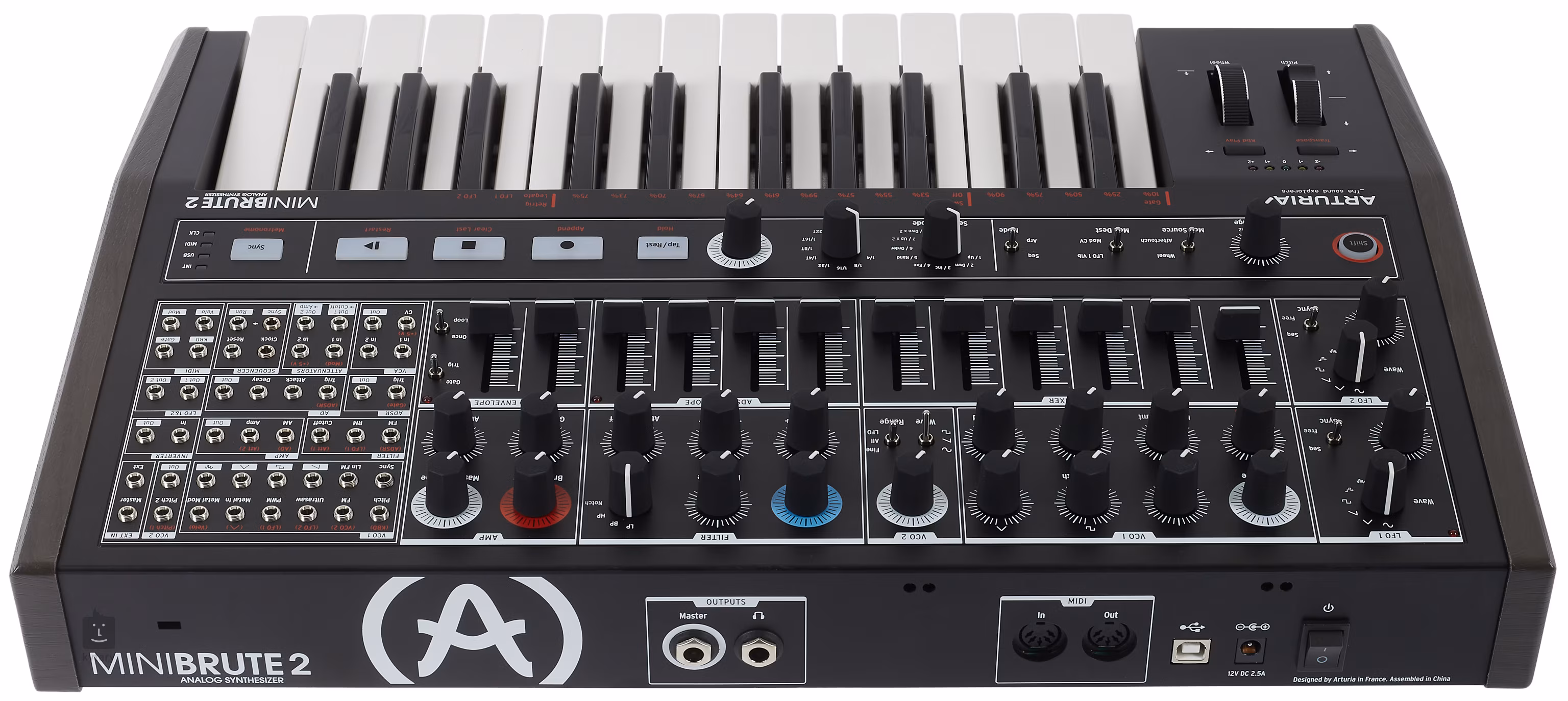 Popularny analogowy syntezator Arturia Minibrute w swojej drugiej wersji oferuje drugi oscylator, drugie LFO, nowe możliwości modulacji filtra i VCO, zapętloną obwiednię, a przede wszystkim potężną patchbay, dzięki której można znacznie modulować dźwięk zarówno w ramach Minibrute 2, jak i za pomocą zewnętrznych źródeł. Nie brakuje wbudowanego sekwencera, arpeggiatora, klawiatury z aftertouch lub MIDI i USB do połączenia z DAW. Minibrute 2 swoją funkcjonalnością przypomina szwajcarski scyzoryk i może być równie ostry.