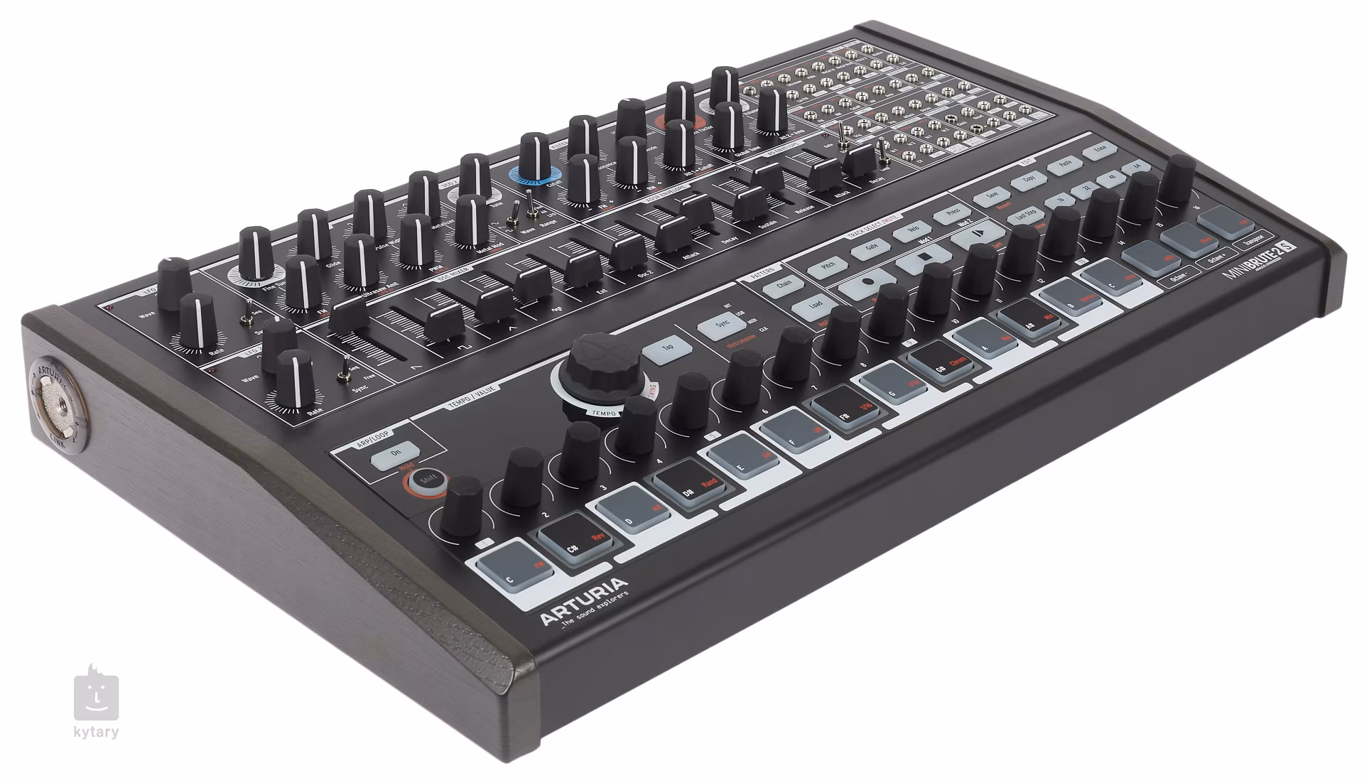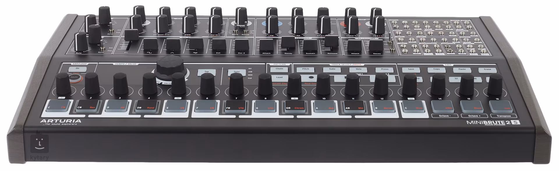 oferuje parę oscylatorów o różnych przebiegach, pojedynczy mikser przebiegów i generator szumów, filtr Steinera-Parkera z regulowaną stromością obcinania, ADSR i obwiednię AD, dwa LFO lub układ napędowy Brute Factor. Wszystkie parametry mogą być kontrolowane bezpośrednio z panelu przedniego, dając Ci pełną kontrolę nad narodzinami Twojego własnego brzmienia.