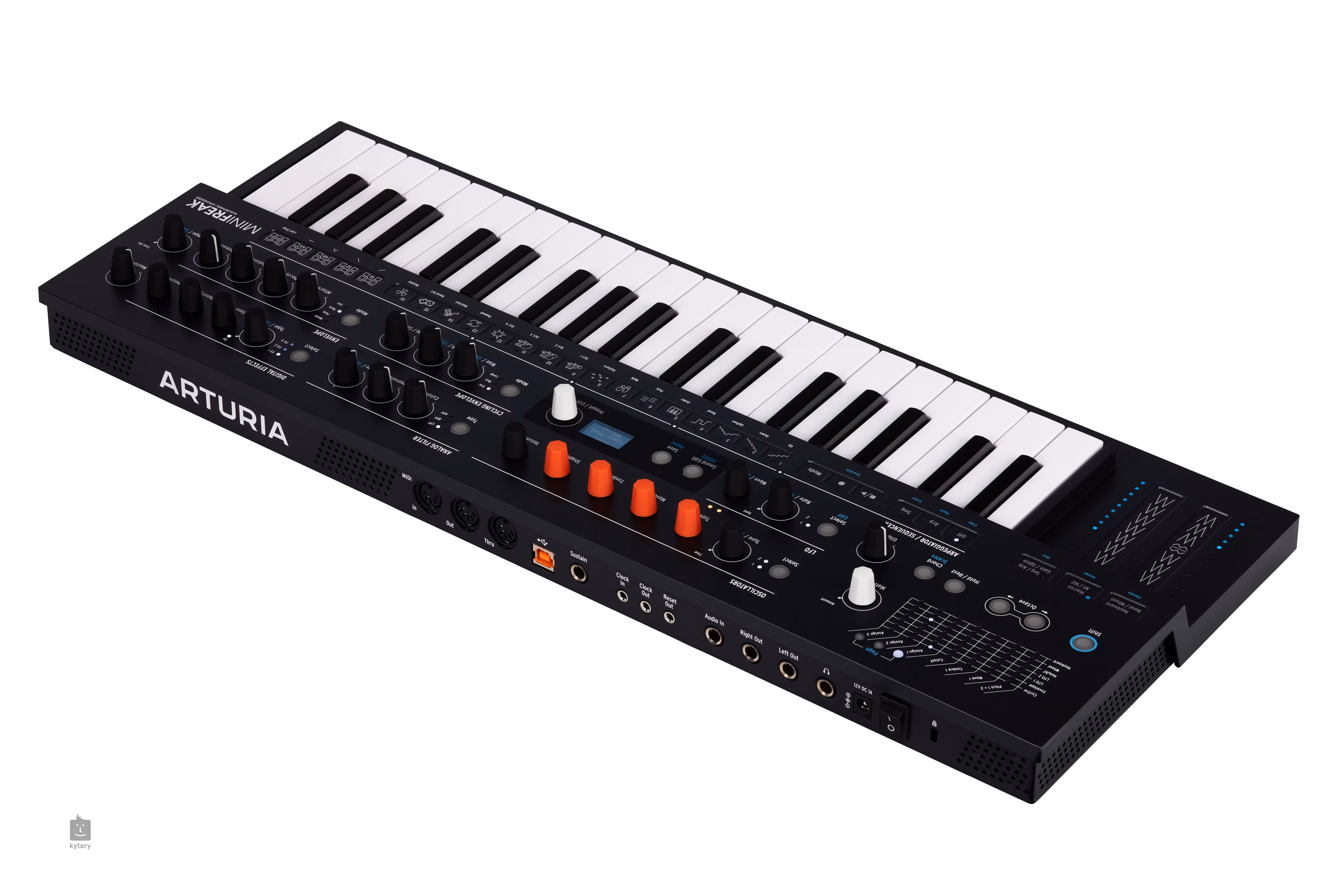 Arturia MiniFreak to oryginalny syntezator z cyfrowymi oscylatorami, analogowym filtrem i brzmieniami z popularnego modułu eurorackowego Plaits firmy Mutable Instruments. Działa w trybie monofonicznym i parafofonicznym i jest wyposażony w sekwencer, arpeggiator, moduł efektów modulacyjnych oraz zaawansowane funkcje losowe. MiniFreak zdecydowanie należy do najciekawszych i najbardziej inspirujących instrumentów w tym przedziale cenowym.