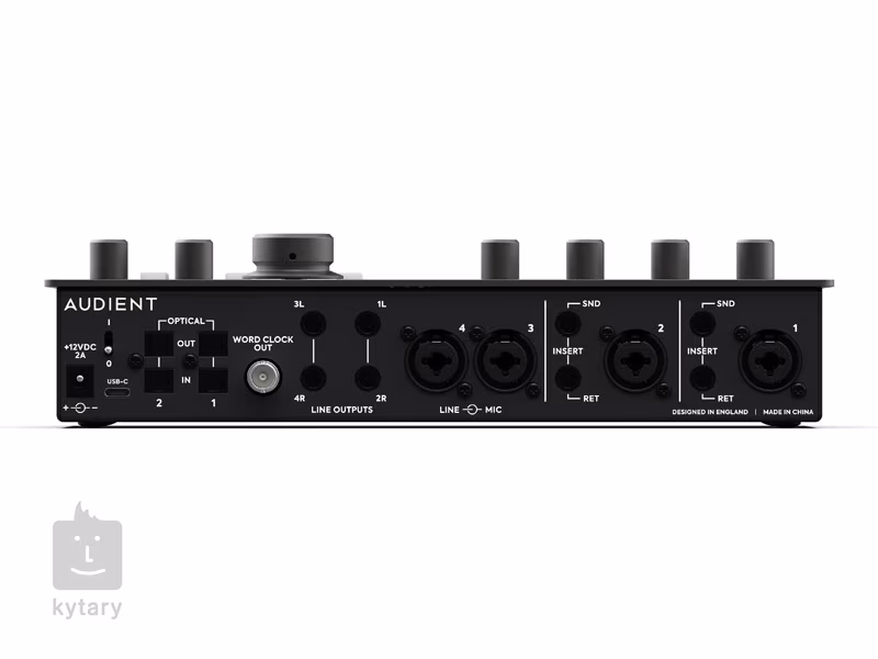 Łączność i sterowanie Panel główny zawiera solidne pokrętło do kontroli głośności wejść i wyjść, podświetlane mierniki LED oraz przełączniki zasilania fantomowego. iD44 MKII to także elastyczne możliwości podłączania w postaci dwóch wyjść słuchawkowych, wejść liniowych, czterech wejść combo, czterech wyjść liniowych do monitorów studyjnych lub mikserów, dwóch Insertów, ADAT In/Out czy portu USB-C do ultraszybkiego transferu sygnału.
