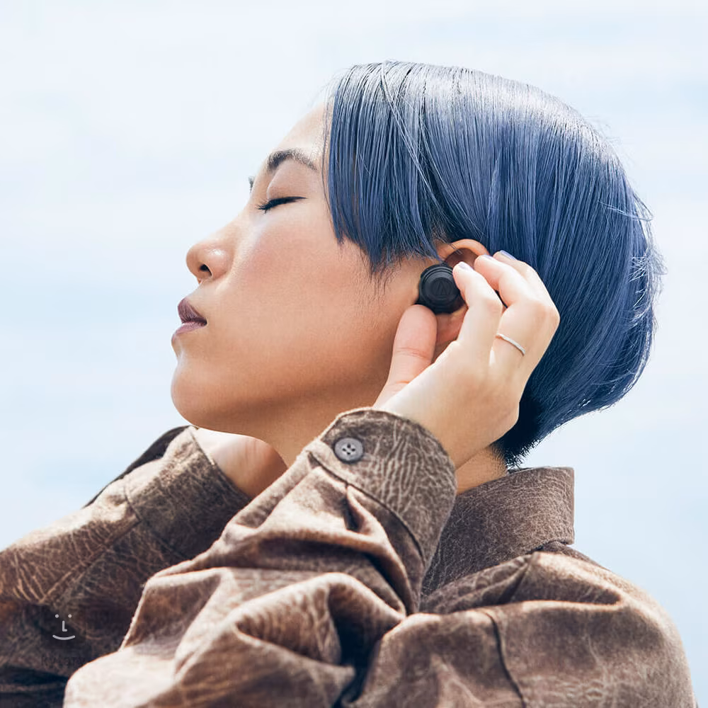 W zestawie znajduje się kabel USB-C do ładowania i cztery rozmiary nauszników (XS, S, M, L).