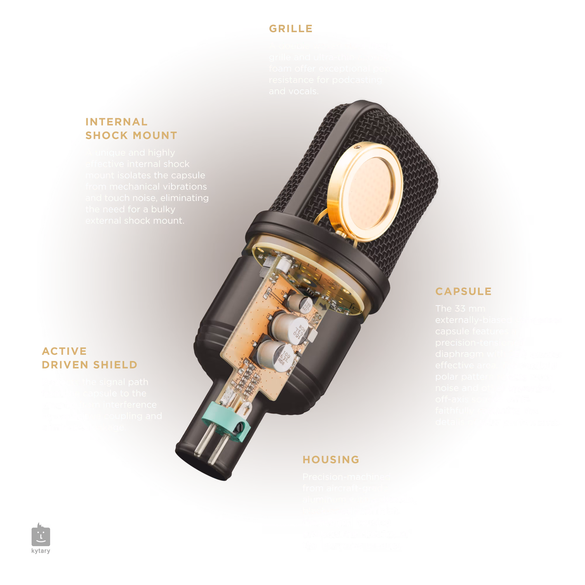 33-milimetrowa kapsuła pojemnościowa modelu A231 jest wyposażona w precyzyjnie napiętą membranę wykonaną ze specjalnie opracowanej, poddanej obróbce cieplnej folii z równomiernie nałożonym złotem na odległych krawędziach membrany. W rezultacie powierzchnia efektywna membrany jest o 25% większa w porównaniu z kapsułą typowego mikrofonu z dużą membraną.