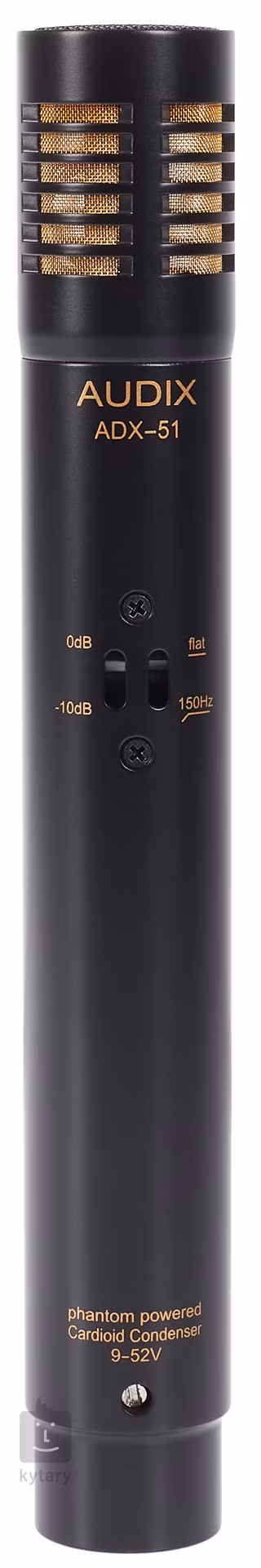 Audix ADX51 to prepolaryzowany mikrofon pojemnościowy, idealny do wszechstronnego nagłaśniania instrumentów, overheadów, chórów itp. Został on zaprojektowany tak, aby był w stanie obsłużyć szeroki zakres dźwięków w zastosowaniach na żywo, jak również w studiach nagraniowych, radiowych i telewizyjnych. Ten mikrofon ma kardioidalną charakterystykę kierunkową i dobrze zrównoważoną charakterystykę częstotliwościową w zakresie 40 Hz - 20 kHz. Mikrofon wyposażony jest w niskoszumową elektronikę, wyjście zbalansowane, przełączniki tłumienia (PAD - 10 dB) oraz filtr częstotliwości (poniżej 150 Hz). Wytrzymała konstrukcja i zdolność do przenoszenia ciśnienia akustycznego do 142 dB sprawiają, że jest to idealne rozwiązanie dla wymagających zastosowań. W zestawie znajduje się uchwyt mikrofonowy DCLIP.