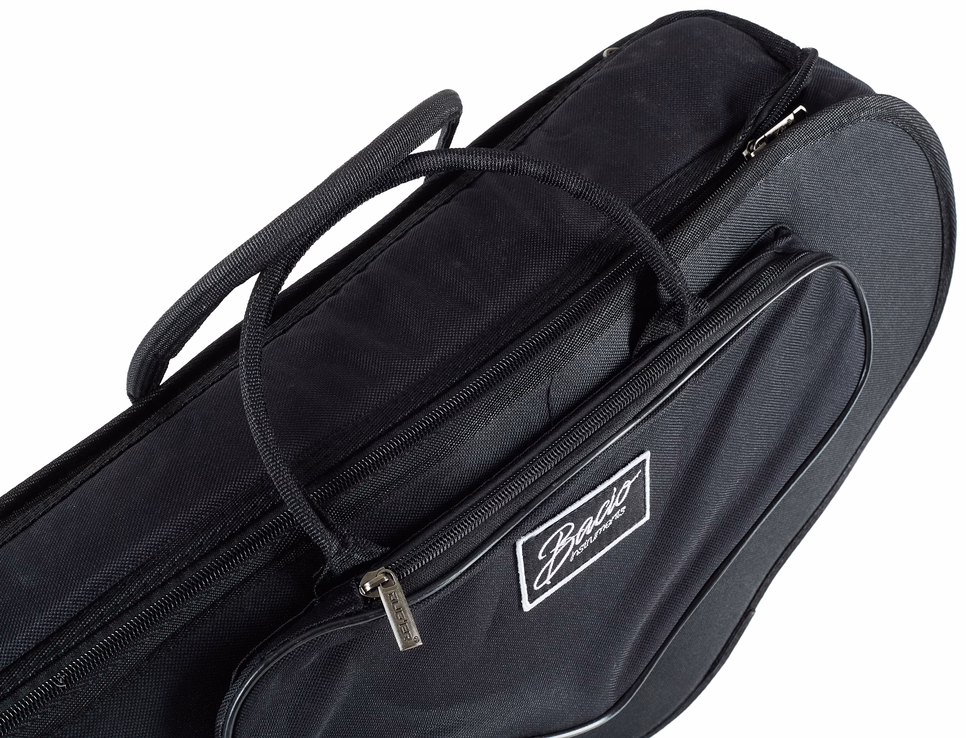 Lekki futerał na saksofon altowy Bacio wykonany z wytrzymałej tkaniny syntetycznej z zewnętrzną kieszenią na akcesoria.