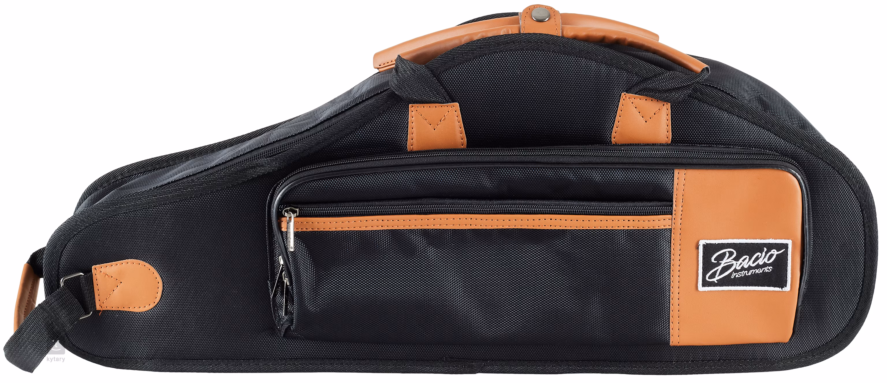 Ten lekki futerał na saksofon altowy firmy Bacio jest wykonany z wytrzymałej tkaniny syntetycznej i posiada dwie zewnętrzne kieszenie z zamkami błyskawicznymi do przechowywania małych akcesoriów, wygodny podwójny uchwyt do łatwego przenoszenia futerału lub paski na plecy, dzięki czemu można go nosić jako plecak.