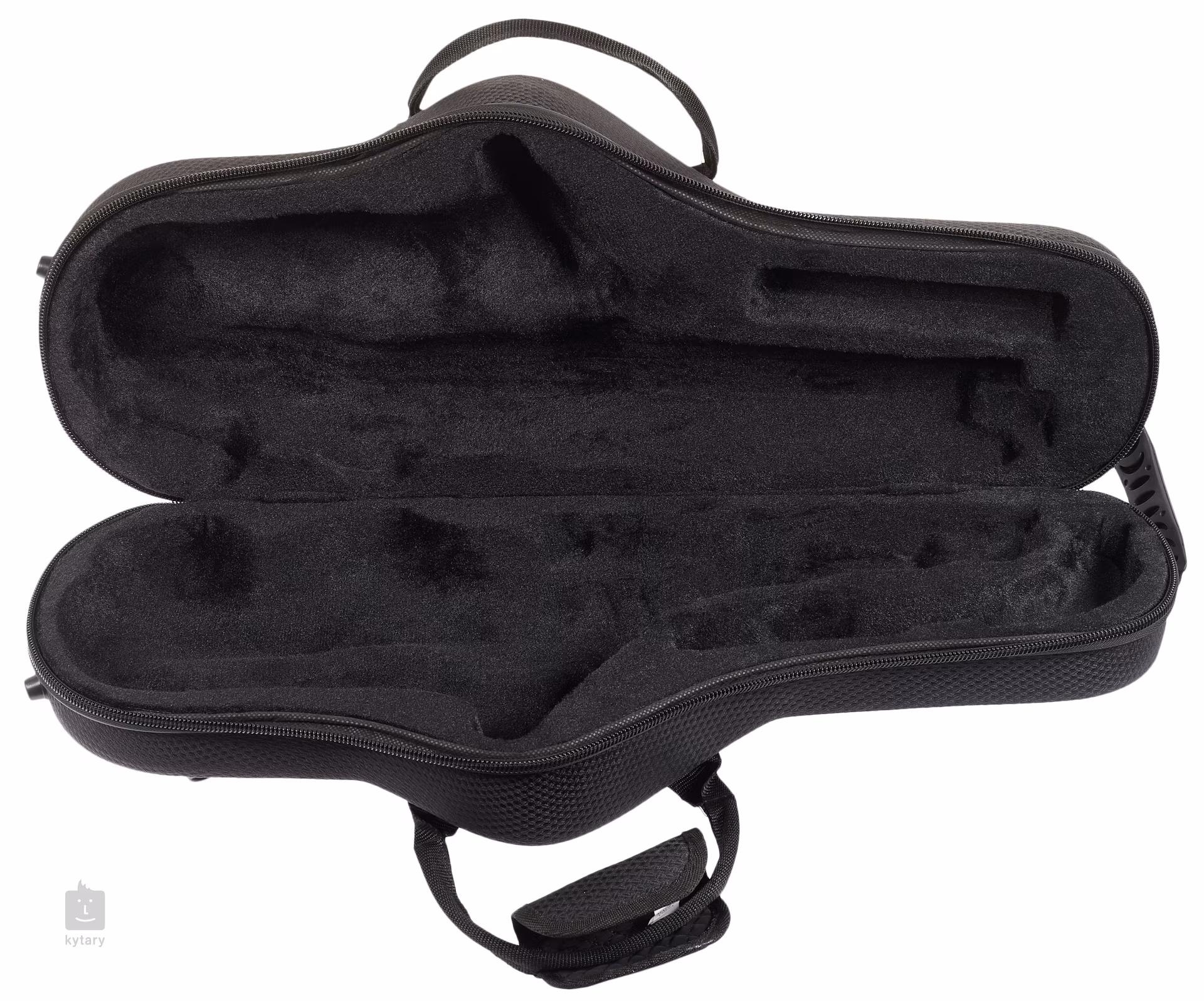 Futerał na saksofon altowy wykonany z wytrzymałej tkaniny sztucznej. Akcesoria można przechowywać w kieszeni zewnętrznej.