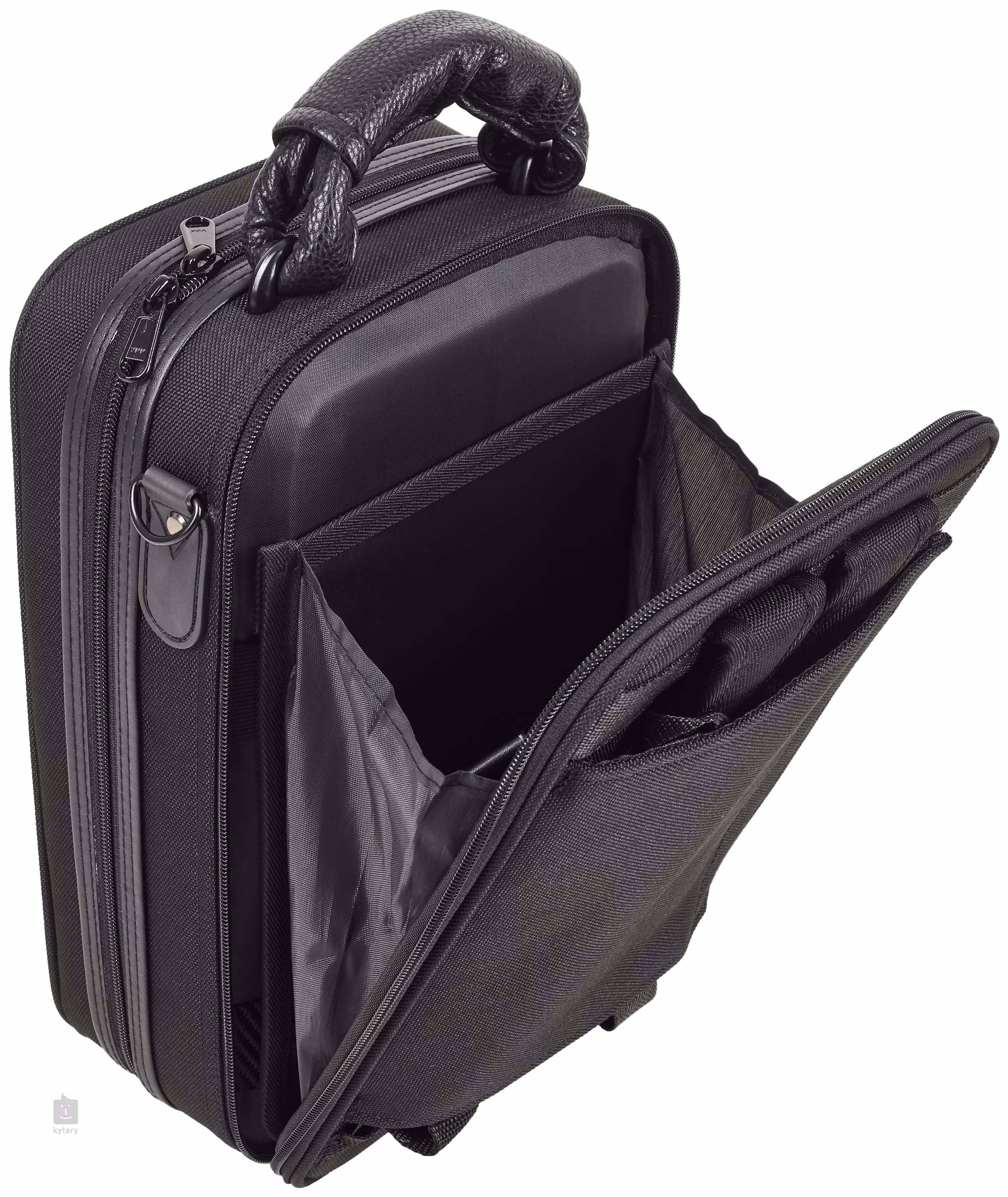 Futerał na klarnet Bacio BCC200 wykonany jest z wytrzymałej tkaniny syntetycznej. Posiada wyprofilowaną przegrodę wewnętrzną, kieszeń zewnętrzną do przechowywania drobnych akcesoriów, uchwyt ułatwiający przenoszenie, paski na ramię i zdejmowany pokrowiec na pasek zapinany na rzep.