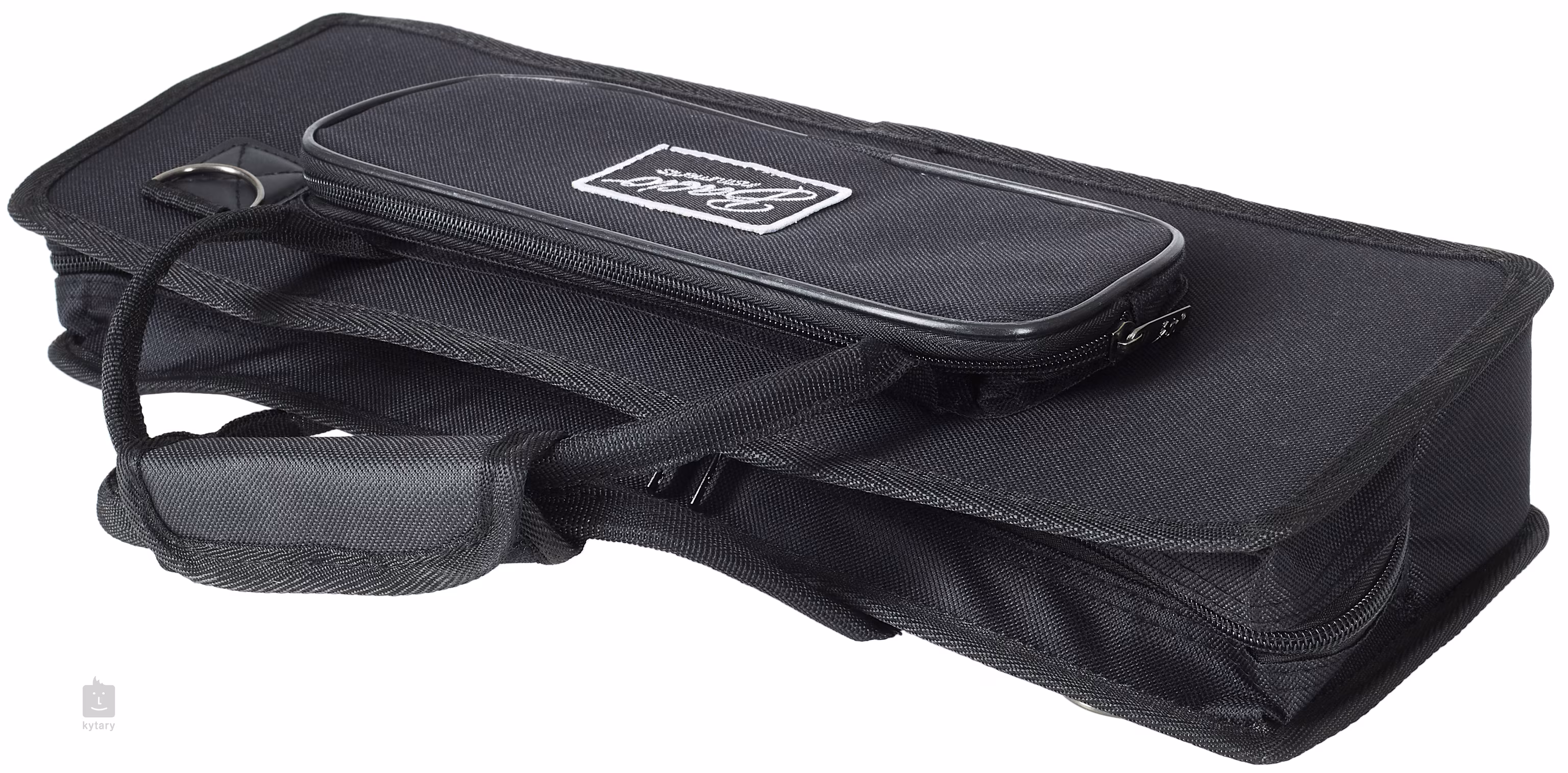 Lekki futerał na flet Bacio wykonany z wytrzymałej tkaniny syntetycznej z zewnętrzną kieszenią na akcesoria.