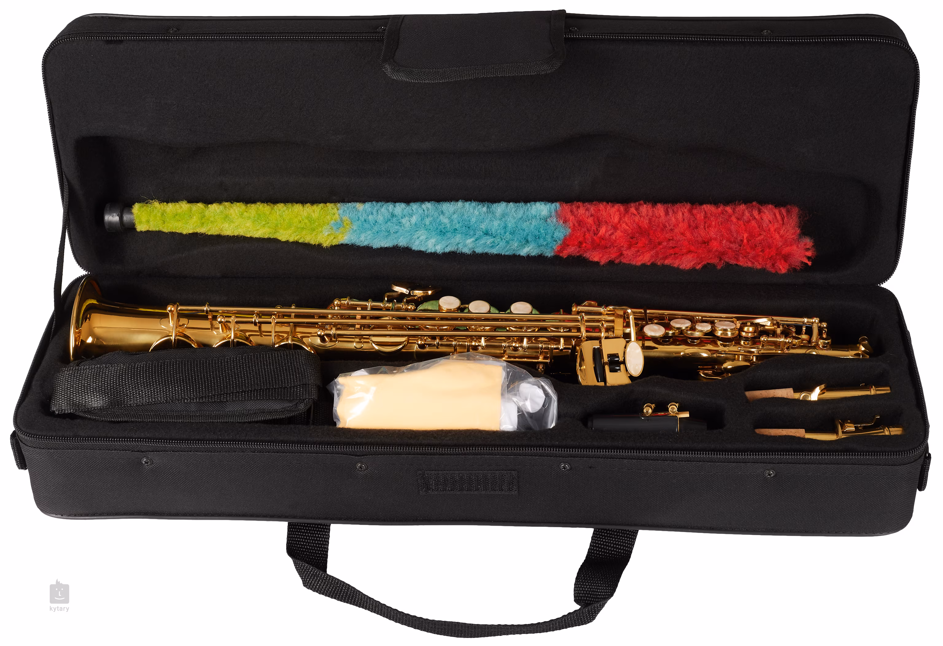 Saksofon sopranowy BSS-100 posiada mosiężny korpus, prosty as/szyjkę i wykończenie złotym lakierem. Saksofon dostarczany jest w miękkim futerale wraz z ustnikiem, ligaturą i akcesoriami (pasek, tarcza).