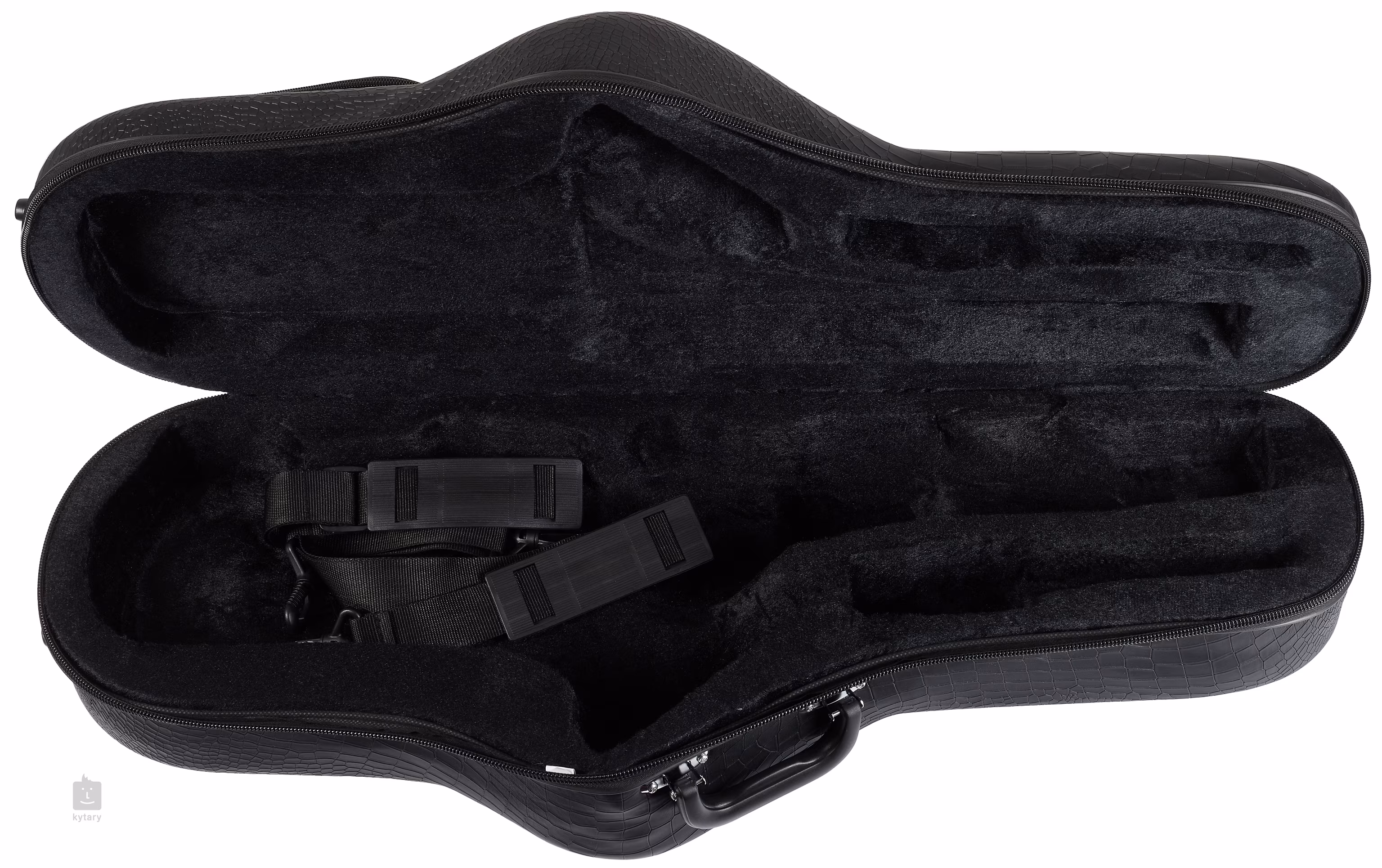 Futerał na saksofon tenorowy z wierzchnią powłoką z imitacji skóry. Akcesoria można przechowywać w kieszeni zewnętrznej.