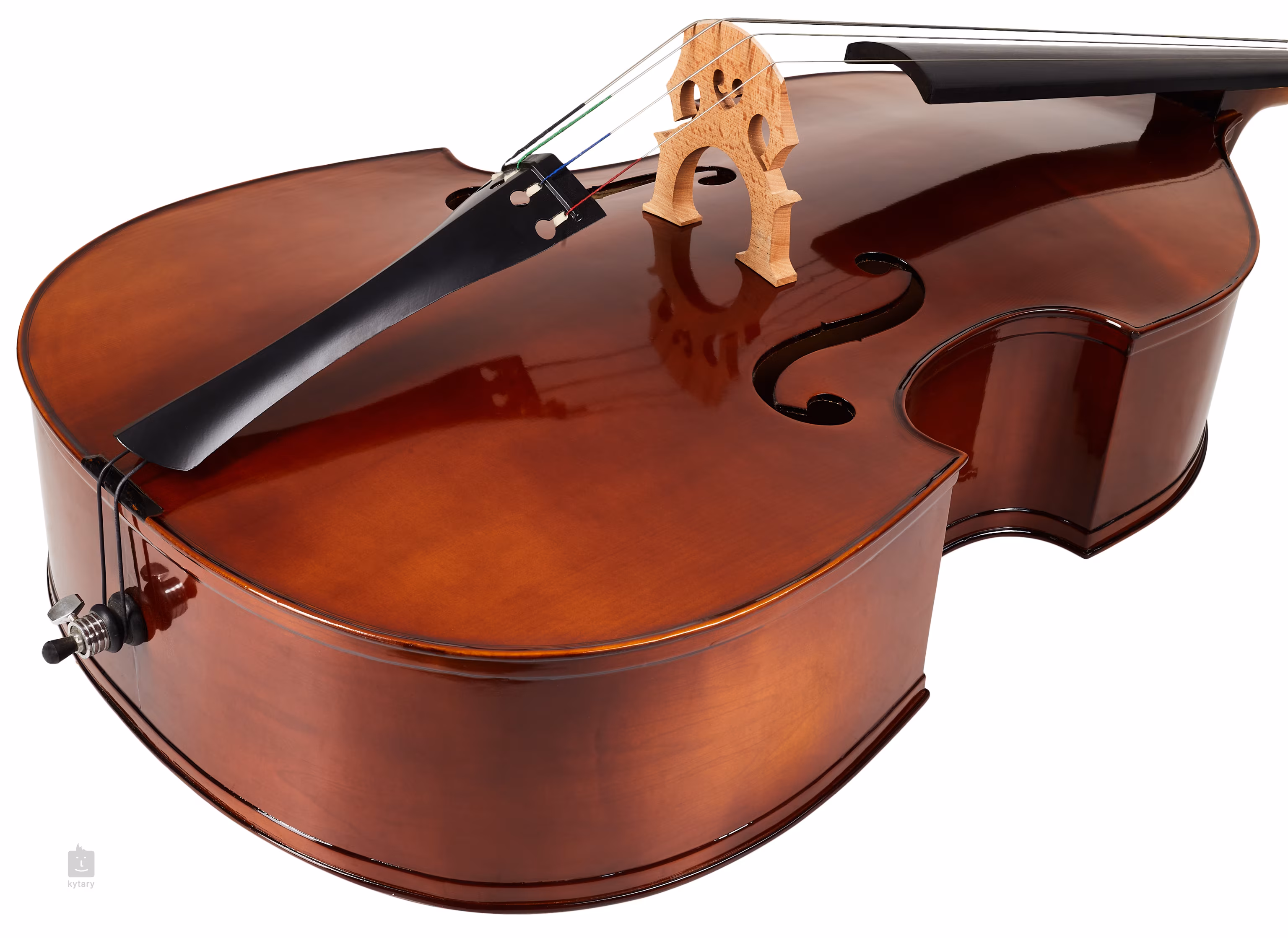 Ten kontrabas od Bacio Instruments z pewnością zadowoli zwłaszcza bardziej zaawansowanych graczy szukających wysokiej jakości instrumentu w przystępnej cenie. Góra instrumentu wykonana jest tradycyjnie z litego drewna świerkowego, natomiast tył i boki to klon. Podkładka dźwiękowa i podstrunnica wykonane są z hebanu.