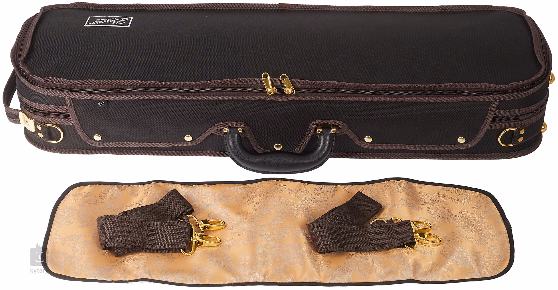 Ten stylowy futerał na skrzypce oferuje wiele praktycznych funkcji, ale przede wszystkim naprawdę niezawodną ochronę dla Twojego instrumentu. Jego podstawą jest grube wyściełanie z przyjemnie lekkiego materiału piankowego, które wzmocnione jest ramą ze sklejki, chroniącą instrument przed wstrząsami i uderzeniami. Zewnętrzna warstwa wykonana jest z wytrzymałej tkaniny Oxford, która chroni futerał przed zabrudzeniami i warunkami atmosferycznymi, natomiast wnętrze futerału wyłożone jest pluszem, dzięki czemu nie musisz się nawet martwić o bezpieczeństwo lakieru instrumentu. Oczywiście wysokiej jakości okucia zapewniają długą żywotność etui. Ucieszą Cię cztery uchwyty na sznurki, rurka do przechowywania zapasowych sznurków, higrometr, przestronna wewnętrzna komora do przechowywania akcesoriów oraz para wygodnych uchwytów.