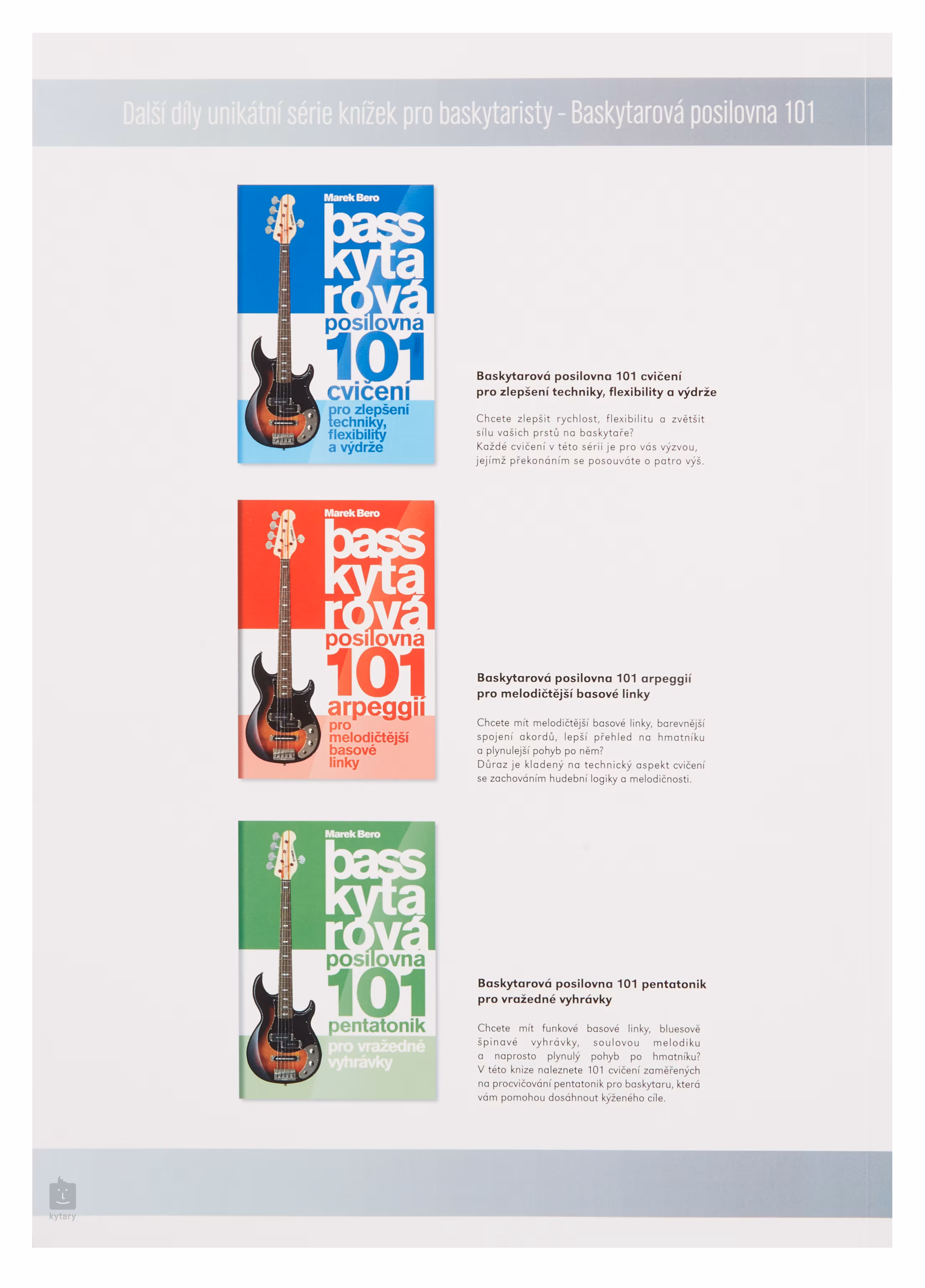 Zawiera ona 101 ćwiczeń mających na celu ćwiczenie podstawowych skal durowych i molowych dla czterostrunowego basu, z naciskiem na techniczny aspekt ćwiczeń przy jednoczesnym zachowaniu muzycznej logiki i melodyjności. Wszystkie ćwiczenia mieszczą się w zakresie od dwóch do dwunastu taktów, zawierają tabulaturę i zalecane palcowanie, a także są oznaczone odpowiednią tonacją skali i krótkim opisem metodologii ćwiczenia dla większej przejrzystości. Postępując zgodnie z zalecanymi zasadami ćwiczeń, osiągniesz bardzo znaczące rezultaty w stosunkowo krótkim czasie. Wcześniej niemożliwe do zagrania fragmenty staną się rutyną, a inni gracze będą zdumieni melodyjnością i płynnością gry.