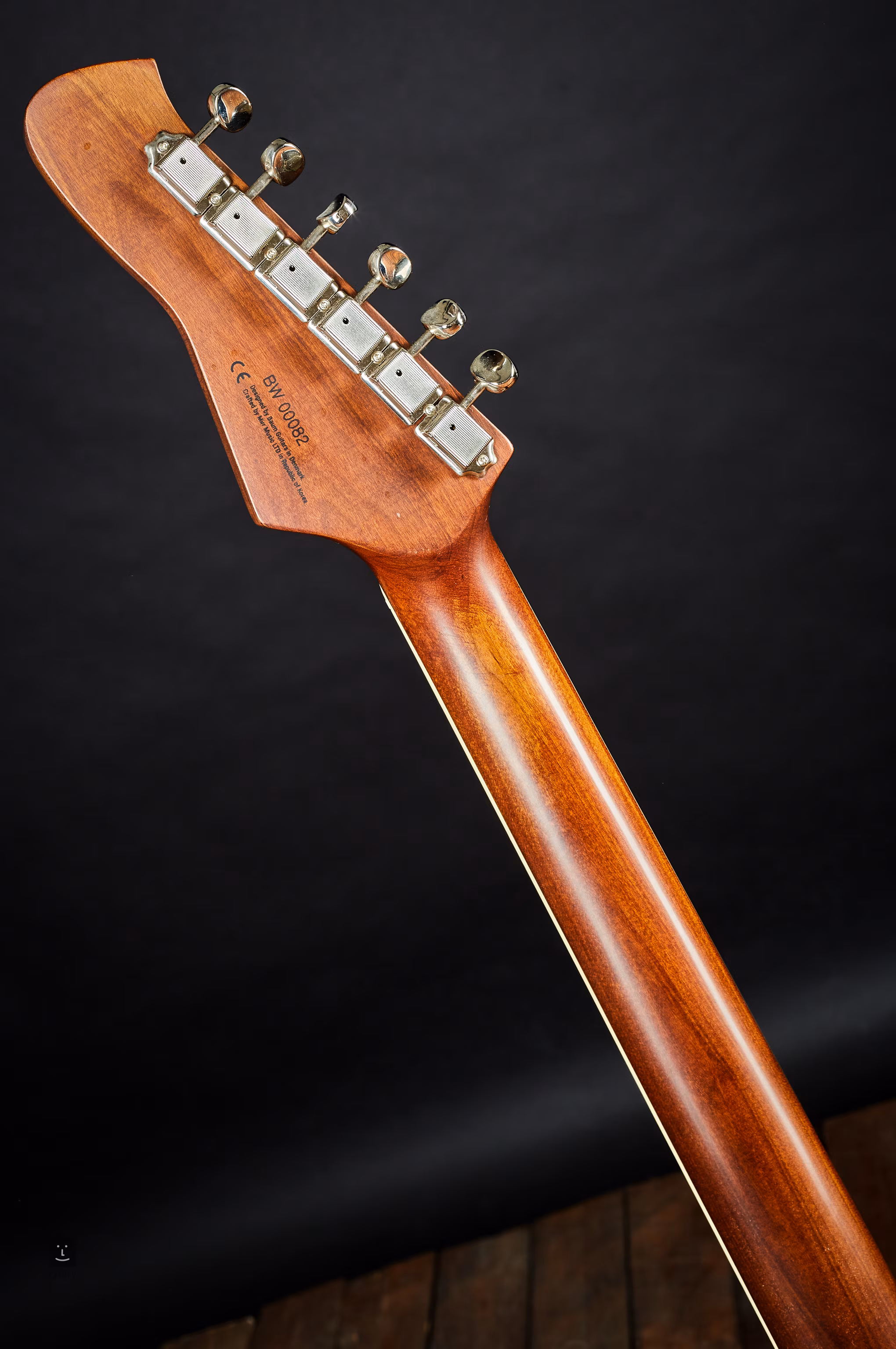 Mahoniowy, offsetowy korpus jest lakierowany w kolorze Inca Gold. Szyjka z palonego klonu, podstrunnica z palisandru. Promień 12", menzura 25,5". Przetworniki to oryginalne minihumbuckery z magnesami Alnico V i impedancją 8,5 kOhm (szyjka) i 10,5 kOhm (strunnik).
