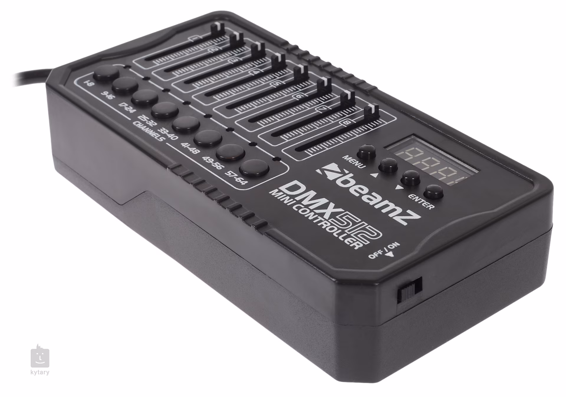 DMX-512 firmy BeamZ to kompaktowy kontroler DMX, który dzięki niewielkim rozmiarom i wadze idealnie nadaje się do podróży. Zasilany jest wbudowanym akumulatorem 9V, który wystarcza na sześć do ośmiu godzin pracy na jednym ładowaniu.
