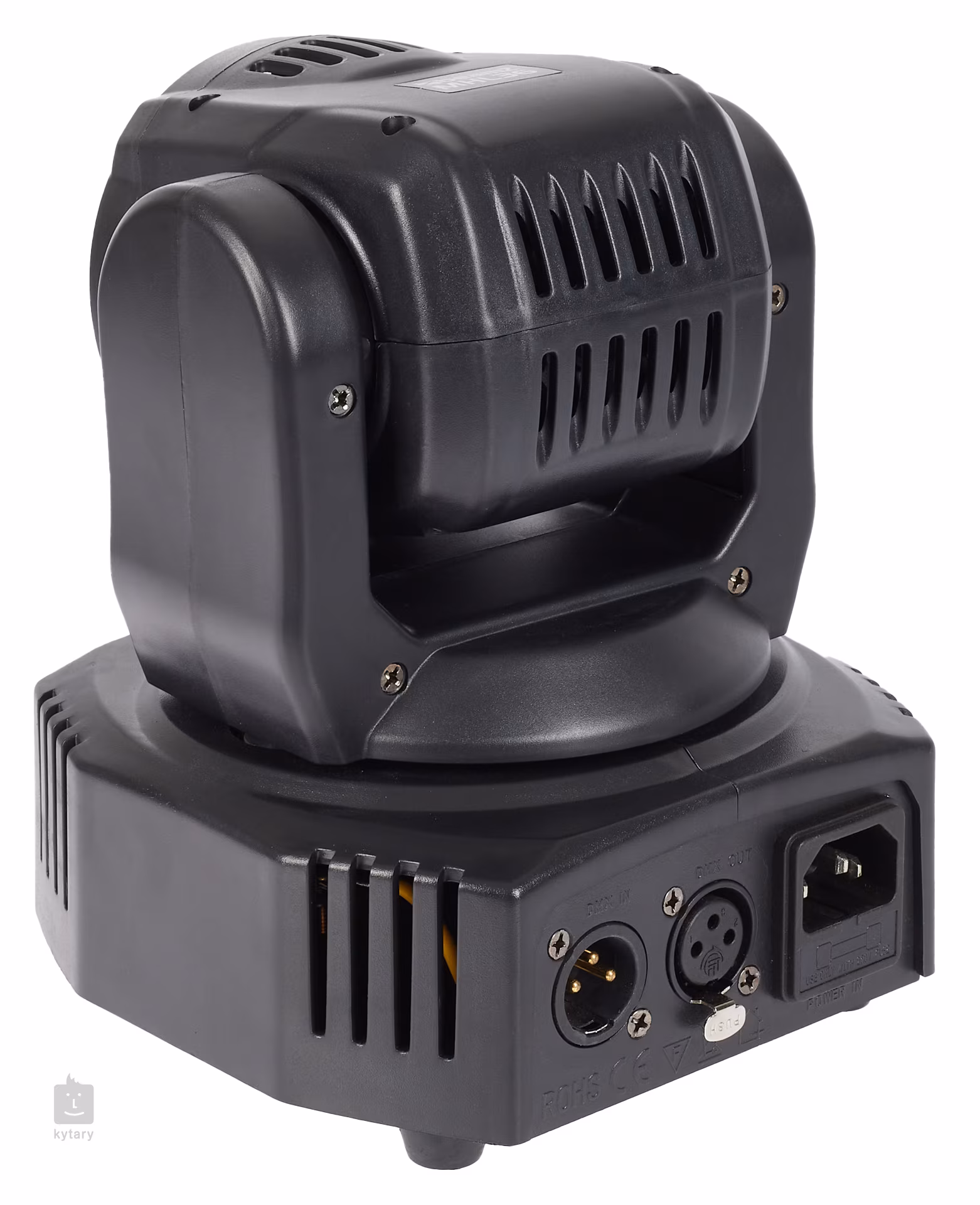 Do tworzenia kolorowych efektów świetlnych służy mieszanie kolorów RGBW, dziesięć kolorowych presetów i cztery wstępnie ustawione pokazy świetlne. Nie brakuje również elektronicznego ściemniacza światła (0–100%) oraz funkcji Pan (540°) i Tilt (180°).