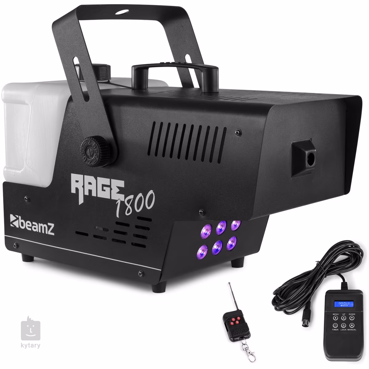 Rage 1800 LED to wysokowydajna wytwornica mgły, która wytwarza gęstą mgłę podświetlaną sześcioma 9W diodami LED RGBW. Może być sterowana za pomocą kanału DMX, pilota lub przełącznika na 3-metrowym kablu z czytelnym wyświetlaczem LCD. Maszyna do mgły Rage 1800LED od BeamZ to połączenie potężnej maszyny do mgły i intensywnego kolorowego podświetlenia, które oświetla mgłę w różnych kolorach, ożywiając atmosferę każdego wydarzenia. Producent sprawdzi się nie tylko w stałych instalacjach w klubach muzycznych i barach, ale także w mobilnej rozrywce, na imprezach firmowych i innych podobnych wydarzeniach.