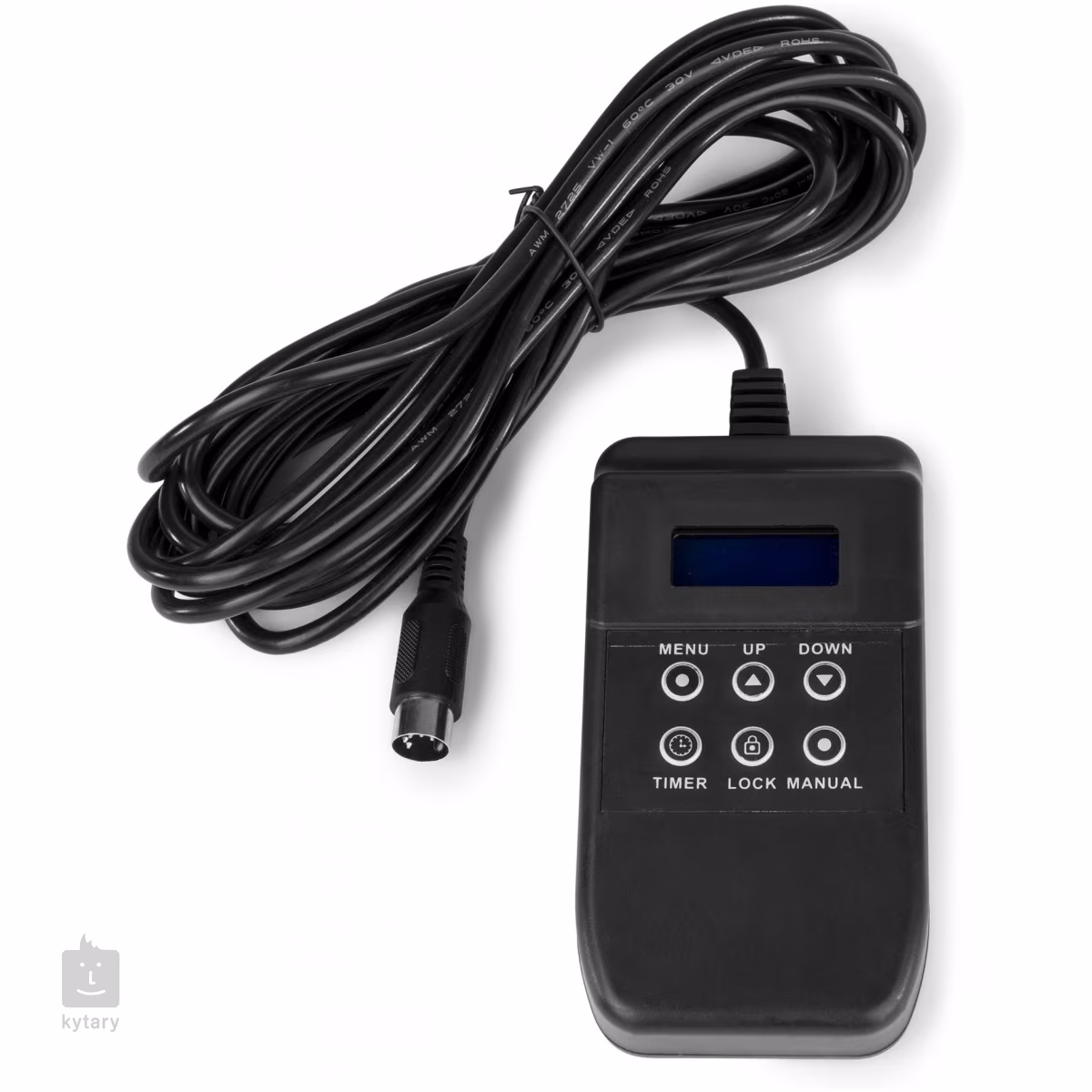 Urządzeniem można sterować za pomocą pilota zdalnego sterowania, który jest podłączony do urządzenia za pomocą 3-metrowego kabla, lub za pomocą bezprzewodowego pilota zdalnego sterowania dołączonego do zestawu. Dostępne jest również sterowanie za pomocą standardowego protokołu DMX512 z ośmioma kanałami - w tym celu urządzenie jest wyposażone w 3-pinowe złącza DMX. Waga brutto urządzenia wynosi 6,7 kg.