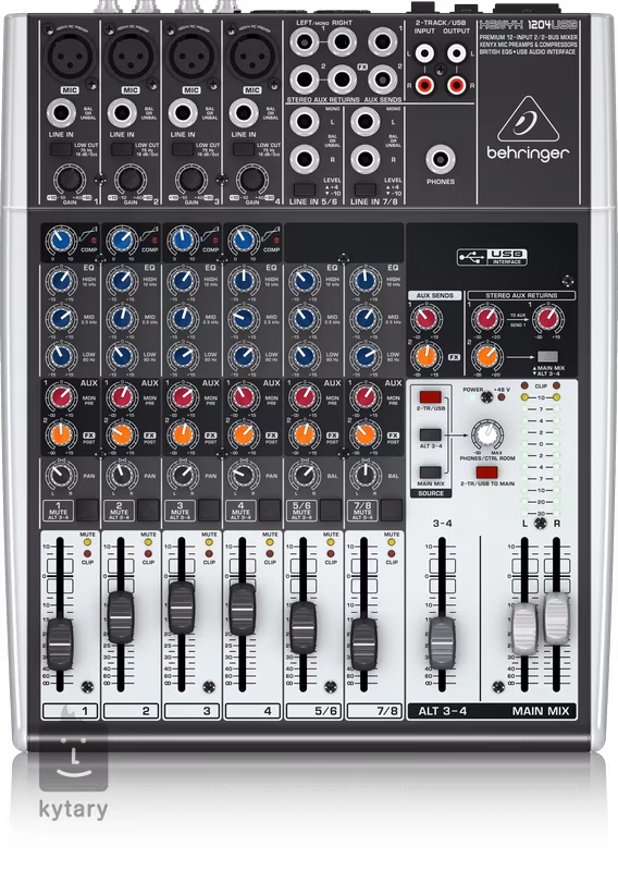 XENYX 1204USB to analogowy mikser z interfejsem USB, wbudowanym kompresorem, dwoma podgrupami i dwoma wysyłkami efektów (post i pre) na wszystkich kanałach. Do wprowadzania sygnału służą cztery wejścia mikrofonowe/liniowe i dwa kanały stereo. Kanały mikrofonowe są wyposażone w kompresor do kontroli dynamiki, wszystkie kanały mają trzypasmową korekcję, 2x send do wzbogacenia dźwięku o efekty zewnętrzne lub potrzeby monitorowania, regulator panoramy, gain i przycisk do przypisania kanału do podgrupy.