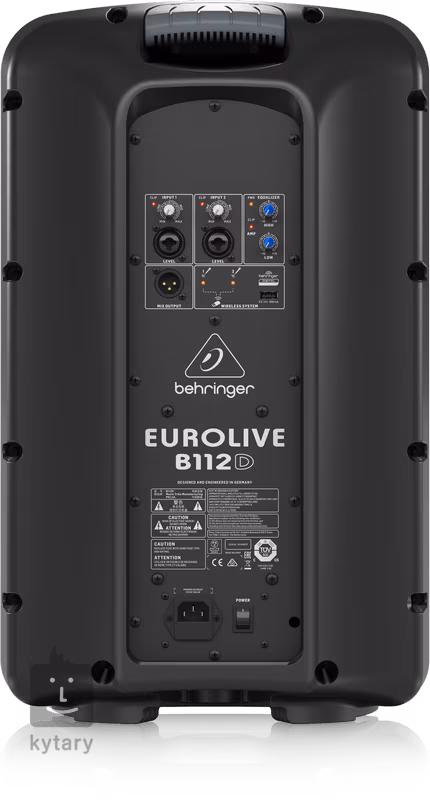 Wewnątrz wytrzymałej konstrukcji B112D znajdują się 12-calowe głośniki niskotonowe i 1-calowe głośniki wysokotonowe, które wraz ze wzmacniaczem klasy D zapewniają maksymalną moc wyjściową do 1000 W. Panel główny zawiera dwupasmowy korektor, pokrętła głośności i wejście dla systemów bezprzewodowych Behringer. Znajdziesz tu również dwa wejścia combo dla mikrofonu lub instrumentu muzycznego oraz wyjście XLR do podłączenia do innego systemu PA. Głośnik można postawić na podłodze lub zamontować na statywie głośnikowym, a para solidnych uchwytów zapewnia wygodny i bezpieczny transport między produkcjami.