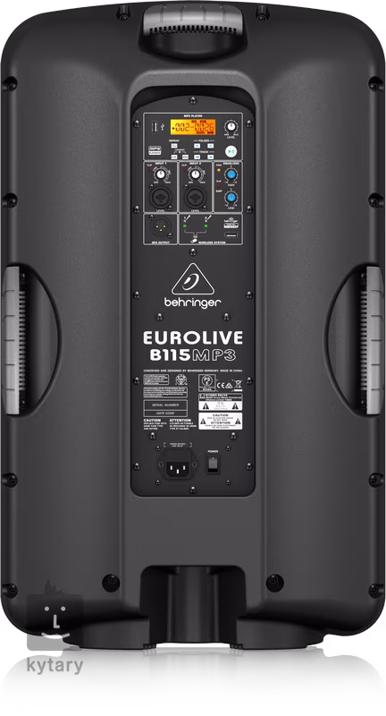 Wewnątrz wytrzymałej konstrukcji B115MP3 znajdują się 15-calowe głośniki niskotonowe i 1,35-calowe głośniki wysokotonowe, które wraz ze wzmacniaczem klasy D zapewniają maksymalną moc wyjściową do 1000 W. Panel główny zawiera dwupasmowy korektor, pokrętła głośności, wejście dla systemów bezprzewodowych Behringer oraz zintegrowany odtwarzacz MP3 z czytelnym wyświetlaczem i panelem sterowania. Znajdziesz tu również dwa wejścia combo dla mikrofonu lub instrumentu muzycznego, port USB dla pamięci flash i wyjście XLR do podłączenia do innego systemu PA. Głośnik można postawić na podłodze lub zamontować na statywie głośnikowym, a para solidnych uchwytów zapewnia wygodny i bezpieczny transport między produkcjami.