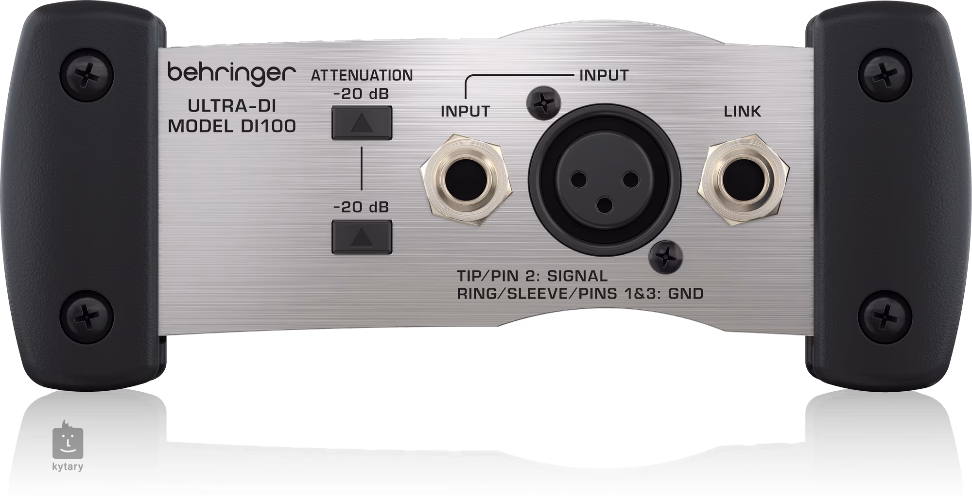 Behringer DI100 to wytrzymały aktywny DI box z wejściami XLR i jack 6,3 mm TRS, zbalansowanym wyjściem XLR, wyjściem Link Out (jack 6,3 mm) oraz tłumieniem -20dB i -40dB dla bezproblemowego połączenia z mikrofonami, instrumentami muzycznymi i głośnikami/PA. DI box może być zasilany baterią 9V lub zasilaniem phantom.