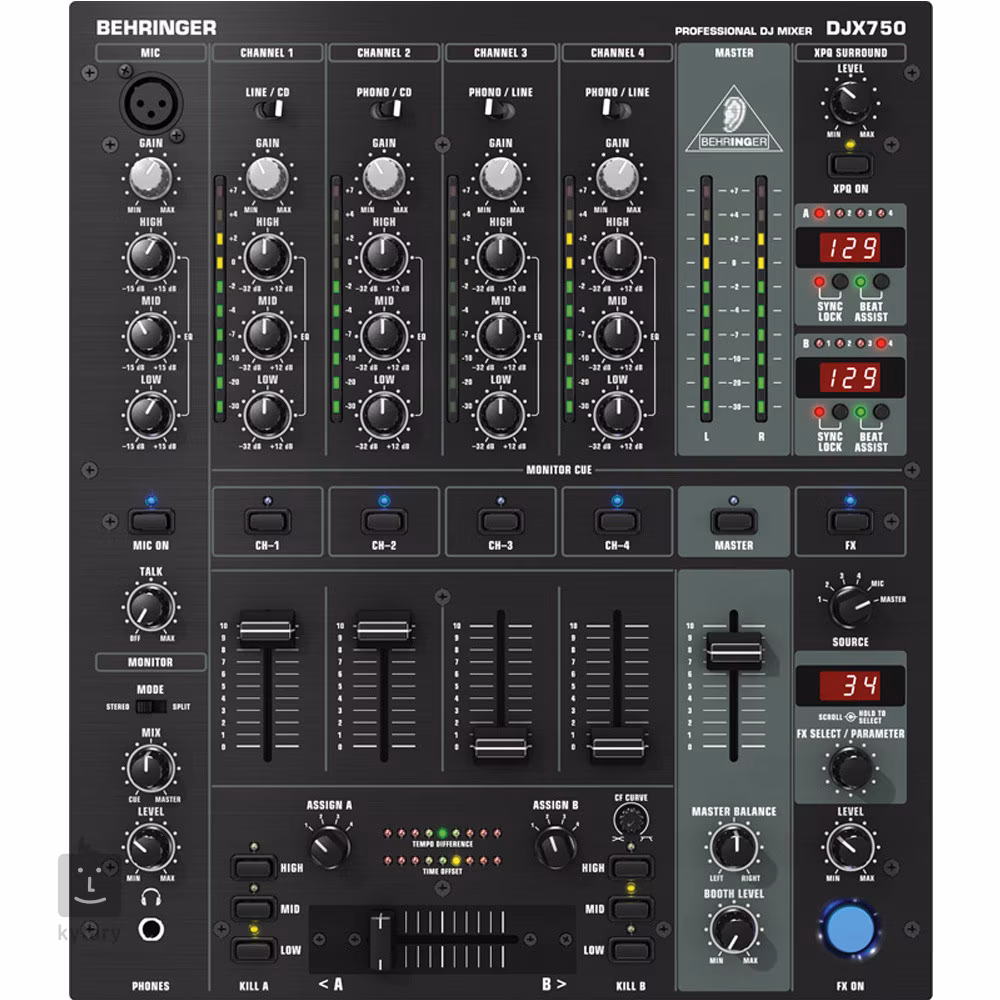 Ponieważ instrumentem jest głos, konsola mikserska DJX750 posiada oddzielny kanał mikrofonowy ze wszystkimi instrumentami dla typowego, doskonałego brzmienia. Dostrajaniem wokalu zajmuje się wbudowany 3-pasmowy korektor, który oferuje wzmocnienie tonów średnich do 15 dB lub tłumienie tonów niskich (80 Hz), średnich (2,5 kHz) i wysokich (12 kHz); tworząc niezwykle szeroki zakres tonów. Korektor kanałów stereo DJX750 wykorzystuje te same średnie częstotliwości z podbiciem do 12 dB i tłumieniem do -32 dB. Kanały te mogą obsługiwać dowolne standardowe źródło wejściowe - od wejścia liniowego, słuchawkowego, CD i taśmowego po odtwarzacze MP3 i mini-disc. Jesteś w pełni zabezpieczony!